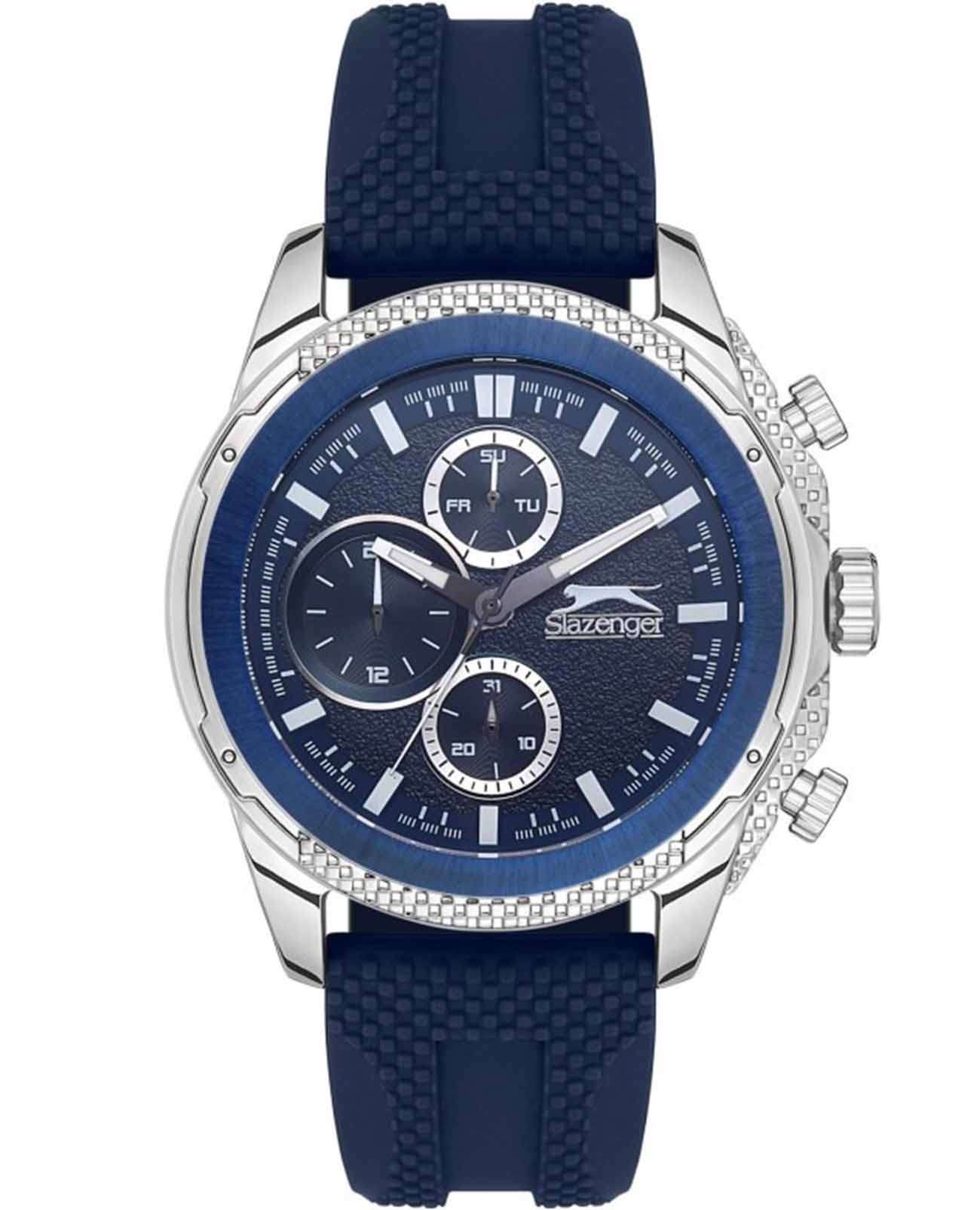 Часы Slazenger SL.09.2153.2.05 представляют собой стильный и функциональный аксессуар для мужчин. Эти кварцевые часы идеально подходят для тех, кто ценит как точность, так и современный дизайн. Корпус из суперметалла придаёт модели прочность и долговечность, а синий силиконовый ремешок обеспечивает комфортное ношение и отлично сочетается с общим дизайном часов. БезельБезельВнешний ободок, закрепляющий стекло. В спортивных часах так называется поворотное кольцо с делениями на циферблате, выполняет роль таймера – замеряет отрезки времени на шкале. Неподвижный безель – элемент декора. Однонаправленно вращающийся безель на дайверских часах позволяет фиксировать моменты погружения и выныривания на поверхность. часов из суперметалла с синим IP-покрытиемIP-покрытиеМетод ионного напыления. Демонстрирует повышенную устойчивость к истиранию, окислению и химическим веществам. Под воздействием высокого давления и температуры около 1500°C молекулы металла надёжно соединяются с частицами корпуса часов.. Диаметр корпуса составляет 46 мм, а толщина — 12 мм, что делает часы выразительными и заметными на запястье. Минеральное стеклоМинеральное стеклоМинеральное стекло представляет собой искусственно выращенный минерал кварца. Такое стекло отличается особой устойчивостью к повреждениям и царапинам. Уступает по некоторым качествам сапфировому стеклу. защищает циферблат от царапин и повреждений, сохраняя его внешний вид. Часы обладают водозащитой уровня WR 50, что позволяет им выдерживать воздействие воды в повседневных ситуациях. Одной из ключевых особенностей является наличие дополнительных малых циферблатов, которые отображают дату, день недели и текущее время в 24-часовом формате. Все эти функции обеспечивают удобное пользование и позволяют всегда оставаться в курсе времени. Люминесцентное покрытиеЛюминесцентное покрытиеПозволяет считывать показания времени в темноте. Производители наносят на стрелки, часовые индексы, безель или поверхность циферблата светонакопительный состав, дающий холодное свечение. на стрелках обеспечивает отличную видимость в темноте. Силиконовый ремешок оснащен классической застежкой, что обеспечивает надежную фиксацию на руке. Вес часов составляет 104 грамма, что делает их достаточно легкими для повседневного использования.