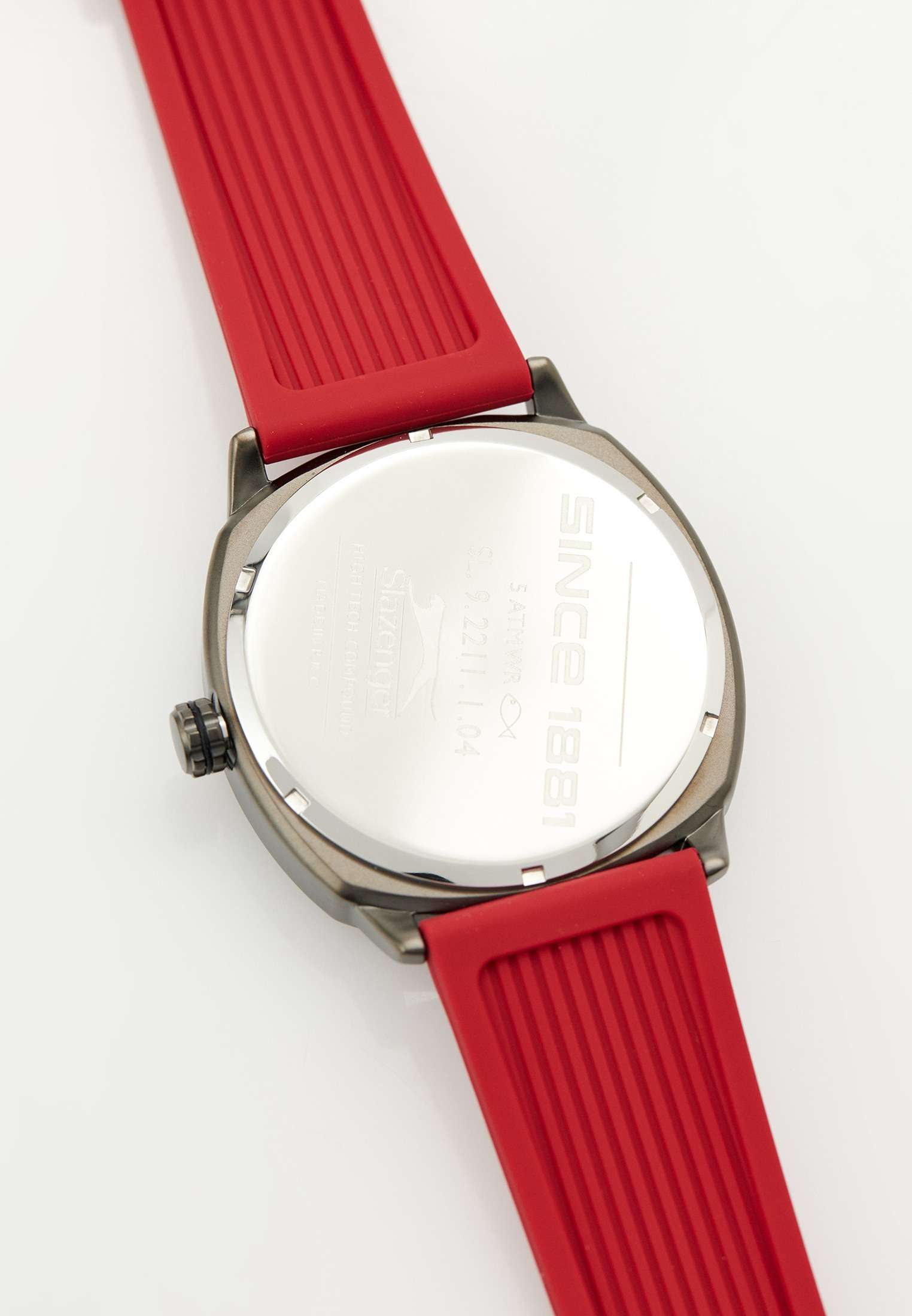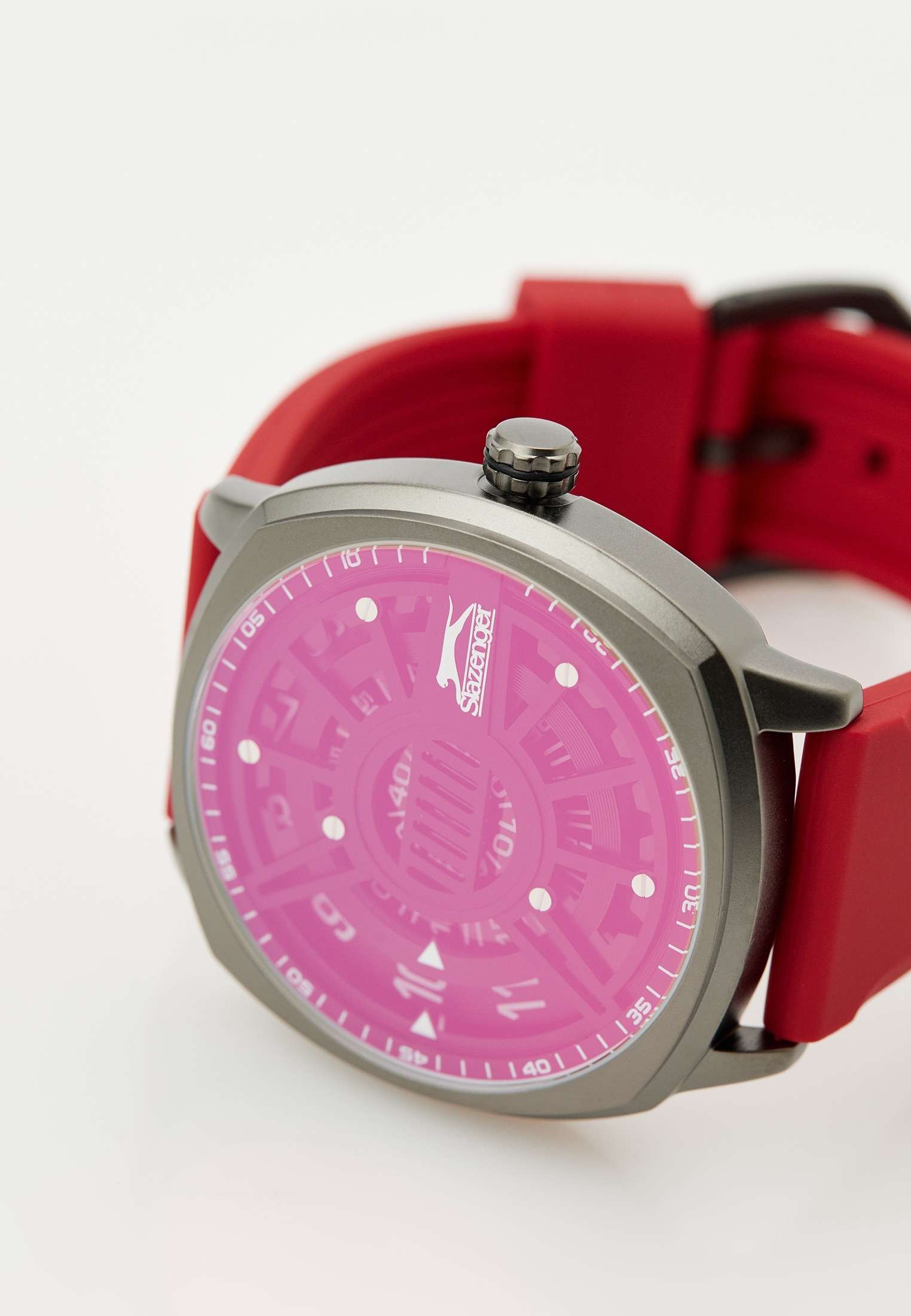 Часы Slazenger SL.09.2211.1.04 представляют собой идеальное сочетание стильного дизайна и высокой функциональности, что делает их отличным выбором для современного мужчины. Оснащенные кварцевым механизмом, они гарантируют точность и надежность в течение долгого времени. Корпус часов выполнен из суперметалла с серым IP-покрытиемIP-покрытиеМетод ионного напыления. Демонстрирует повышенную устойчивость к истиранию, окислению и химическим веществам. Под воздействием высокого давления и температуры около 1500°C молекулы металла надёжно соединяются с частицами корпуса часов., что обеспечивает не только привлекательный внешний вид, но и повышенную прочность, превосходящую многие другие сплавы. Розовый циферблат с разноуровневым дизайном и метками в виде точек украшен логотипом бренда, добавляя изысканности и элегантности. Часы обладают водозащитой уровня 50WR, что позволяет им выдерживать случайные контакты с водой, такие как дождь или брызги. Минеральное стеклоМинеральное стеклоМинеральное стекло представляет собой искусственно выращенный минерал кварца. Такое стекло отличается особой устойчивостью к повреждениям и царапинам. Уступает по некоторым качествам сапфировому стеклу. надежно защищает циферблат от царапин, сохраняя его безупречный вид. Габариты аксессуара включают диаметр корпуса 49 мм и толщину 13 мм, что делает его заметным и солидным на запястье. Вес часов составляет 112 г, а ширина красного силиконового ремешка варьируется от 26 мм до 22 мм, обеспечивая комфорт и удобство при ношении. Классическая застежка ремешка гарантирует надежную фиксацию на руке, а рифленая заводная головка добавляет функциональности и стиля. 24-часовой формат времени делает эти часы практичным и полезным аксессуаром для повседневной жизни.
