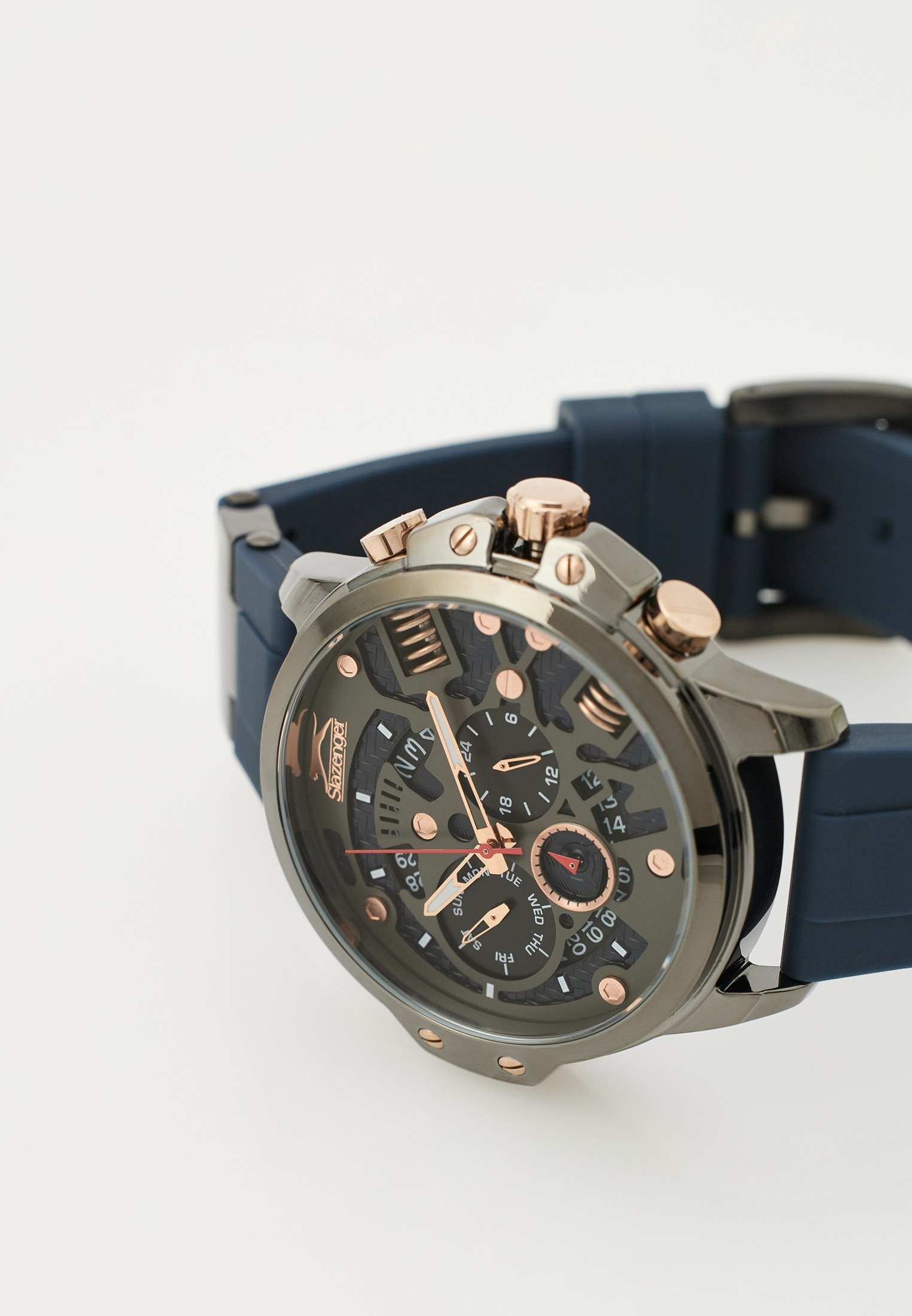Часы Slazenger SL.09.2212.2.02 представляют собой стильный и функциональный аксессуар, созданный для современных мужчин, ценящих качество и надежность. Они оснащены кварцевым механизмом, который обеспечивает точность хода и минимальную необходимость в обслуживании. Люминесцентное покрытиеЛюминесцентное покрытиеПозволяет считывать показания времени в темноте. Производители наносят на стрелки, часовые индексы, безель или поверхность циферблата светонакопительный состав, дающий холодное свечение. на стрелках и метках обеспечивает отличную видимость в темноте. Благодаря водозащите уровня WR 50 (5 ATM), эти часы отлично справляются с воздействием влаги, что делает их подходящими для повседневного ношения и активного образа жизни. Минеральное стеклоМинеральное стеклоМинеральное стекло представляет собой искусственно выращенный минерал кварца. Такое стекло отличается особой устойчивостью к повреждениям и царапинам. Уступает по некоторым качествам сапфировому стеклу. защищает циферблат от царапин и повреждений, гарантируя долгий срок службы. Корпус часов диаметром 47 мм и толщиной 13 мм выполнен из прочного суперметалла с черным IP-покрытиемIP-покрытиеМетод ионного напыления. Демонстрирует повышенную устойчивость к истиранию, окислению и химическим веществам. Под воздействием высокого давления и температуры около 1500°C молекулы металла надёжно соединяются с частицами корпуса часов., что придаёт им стильный и современный вид. Силиконовый синий браслет, дополненный элементами из суперметалла с черным IP-покрытиемIP-покрытиеМетод ионного напыления. Демонстрирует повышенную устойчивость к истиранию, окислению и химическим веществам. Под воздействием высокого давления и температуры около 1500°C молекулы металла надёжно соединяются с частицами корпуса часов., обеспечивает комфорт при носке и надёжно фиксирует часы на запястье, а его размеры (22-20 мм) подходят для большинства мужчин. Часы оснащены рядом полезных функций, таких как индикация даты, дня недели и 24-часовой указатель времени, что делает их не только стильным, но и практичным аксессуаром. Вес модели составляет 110 г, что делает их лёгкими и удобными для ежедневного ношения.