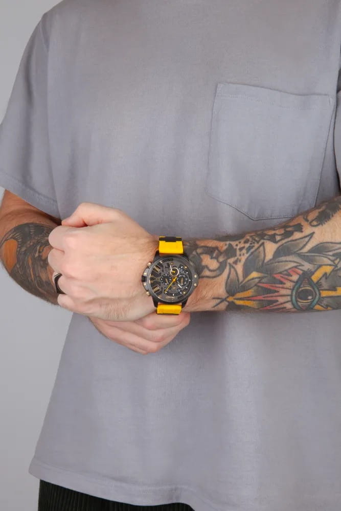 Часы Slazenger SL.09.2212.2.04 представляют собой стильный и функциональный аксессуар, созданный для современных мужчин, ценящих качество и надежность. Они оснащены кварцевым механизмом, который обеспечивает точность хода и минимальную необходимость в обслуживании. Люминесцентное покрытиеЛюминесцентное покрытиеПозволяет считывать показания времени в темноте. Производители наносят на стрелки, часовые индексы, безель или поверхность циферблата светонакопительный состав, дающий холодное свечение. на стрелках и метках обеспечивает отличную видимость в темноте. Благодаря водозащите уровня WR 50 (5 ATM), эти часы отлично справляются с воздействием влаги, что делает их подходящими для повседневного ношения и активного образа жизни. Минеральное стеклоМинеральное стеклоМинеральное стекло представляет собой искусственно выращенный минерал кварца. Такое стекло отличается особой устойчивостью к повреждениям и царапинам. Уступает по некоторым качествам сапфировому стеклу. защищает циферблат от царапин и повреждений, гарантируя долгий срок службы. Корпус часов диаметром 47 мм и толщиной 13 мм выполнен из прочного суперметалла с черным IP-покрытиемIP-покрытиеМетод ионного напыления. Демонстрирует повышенную устойчивость к истиранию, окислению и химическим веществам. Под воздействием высокого давления и температуры около 1500°C молекулы металла надёжно соединяются с частицами корпуса часов., что придаёт им стильный и современный вид. Силиконовый желтый браслет, дополненный элементами из суперметалла с черным IP-покрытиемIP-покрытиеМетод ионного напыления. Демонстрирует повышенную устойчивость к истиранию, окислению и химическим веществам. Под воздействием высокого давления и температуры около 1500°C молекулы металла надёжно соединяются с частицами корпуса часов., обеспечивает комфорт при носке и надёжно фиксирует часы на запястье, а его размеры (22-20 мм) подходят для большинства мужчин. Часы оснащены рядом полезных функций, таких как индикация даты, дня недели и 24-часовой указатель времени, что делает их не только стильным, но и практичным аксессуаром. Вес модели составляет 110 г, что делает их лёгкими и удобными для ежедневного ношения.