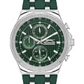 Мужские наручные часы Slazenger SL.09.2218.2.02 — идеальный аксессуар для тех, кто ценит стиль и функциональность. Эти часы, созданные известным британским брендом, отличаются высоким качеством и надежностью. Оснащенные кварцевым механизмом, они гарантируют точность хода и долгий срок службы. Корпус часов выполнен из прочного металла, а зеленый циферблат защищен минеральным стекломМинеральное стеклоМинеральное стекло представляет собой искусственно выращенный минерал кварца. Такое стекло отличается особой устойчивостью к повреждениям и царапинам. Уступает по некоторым качествам сапфировому стеклу., устойчивым к царапинам и повреждениям. Зеленый резиновый ремешок с металлическими вставками и классической застежкой обеспечивает комфортное ношение и надежную фиксацию на запястье. Диаметр корпуса составляет 46 мм, а толщина — 12 мм, что придает часам современный и стильный вид. Благодаря водозащите уровня WR 50, вы можете не беспокоиться о случайных попаданиях влаги, что делает эти часы идеальными для повседневного использования. Стрелки снабжены люминесцентным покрытиемЛюминесцентное покрытиеПозволяет считывать показания времени в темноте. Производители наносят на стрелки, часовые индексы, безель или поверхность циферблата светонакопительный состав, дающий холодное свечение., что позволяет легко считывать время в темноте. Функциональность модели включает в себя отображение даты, дня недели и времени в 24-часовом формате на дополнительных малых циферблатах, что делает часы не только стильными, но и практичными.