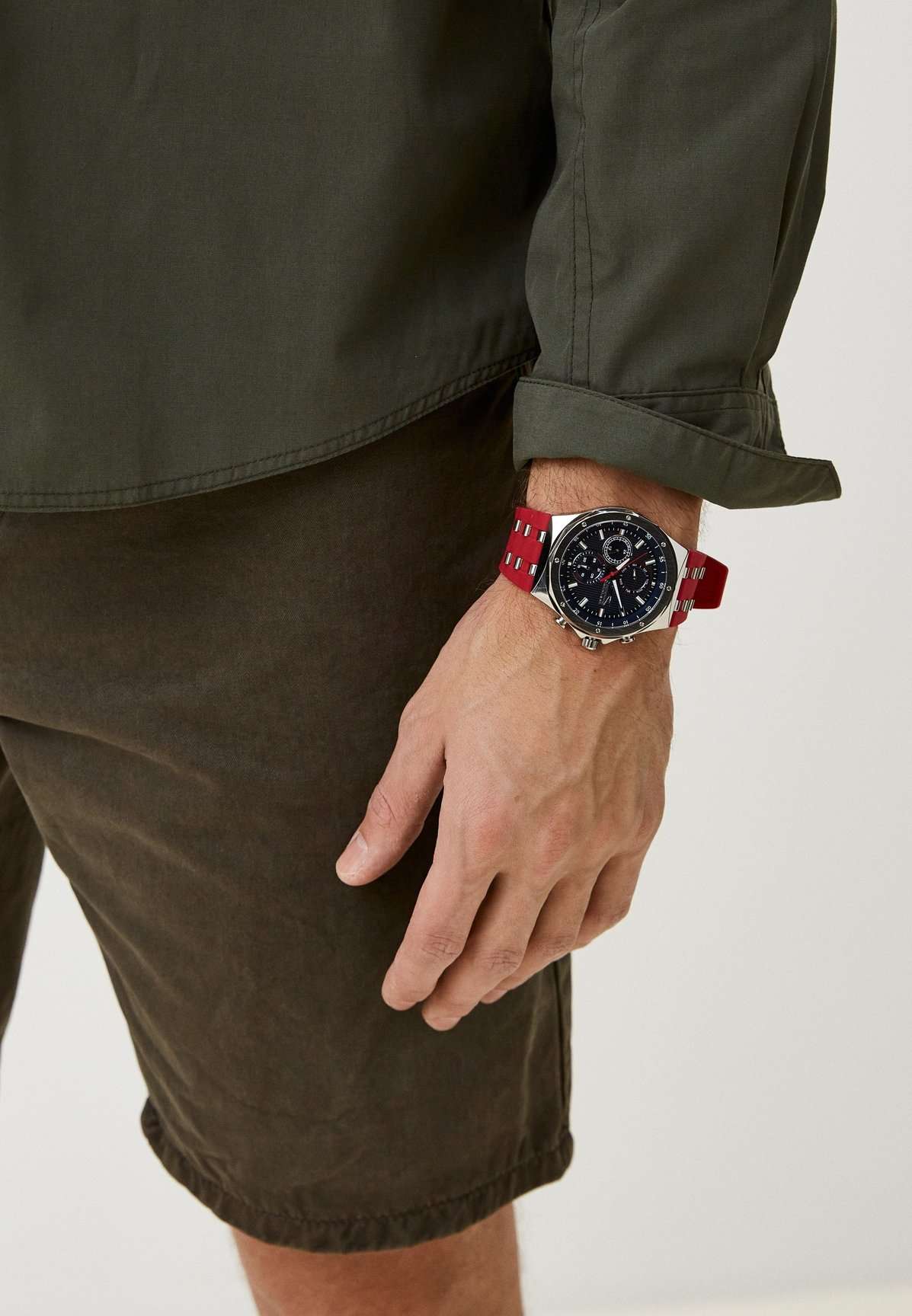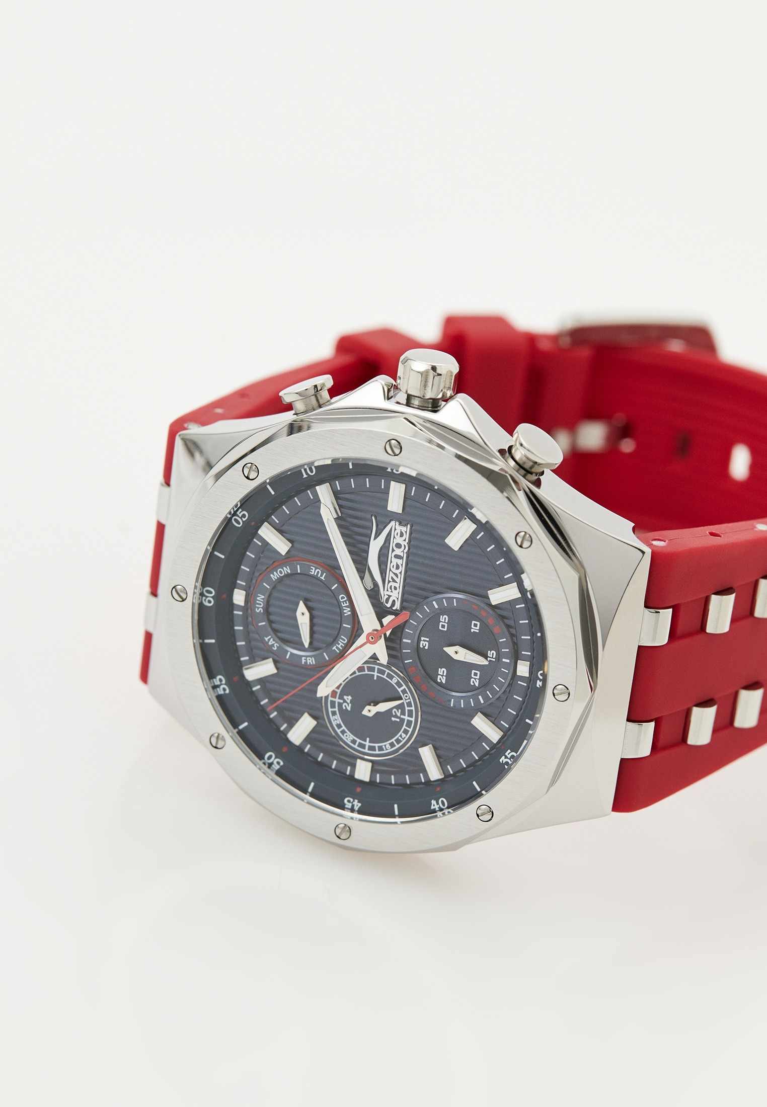 Мужские наручные часы Slazenger SL.09.2218.2.06 — идеальный аксессуар для тех, кто ценит стиль и функциональность. Эти часы, созданные известным британским брендом, отличаются высоким качеством и надежностью. Оснащенные кварцевым механизмом, они гарантируют точность хода и долгий срок службы. Корпус часов выполнен из прочного металла, а синий циферблат защищен минеральным стекломМинеральное стеклоМинеральное стекло представляет собой искусственно выращенный минерал кварца. Такое стекло отличается особой устойчивостью к повреждениям и царапинам. Уступает по некоторым качествам сапфировому стеклу., устойчивым к царапинам и повреждениям. Красный резиновый ремешок с металлическими вставками и классической застежкой обеспечивает комфортное ношение и надежную фиксацию на запястье. Диаметр корпуса составляет 46 мм, а толщина — 12 мм, что придает часам современный и стильный вид. Благодаря водозащите уровня WR 50, вы можете не беспокоиться о случайных попаданиях влаги, что делает эти часы идеальными для повседневного использования. Стрелки снабжены люминесцентным покрытиемЛюминесцентное покрытиеПозволяет считывать показания времени в темноте. Производители наносят на стрелки, часовые индексы, безель или поверхность циферблата светонакопительный состав, дающий холодное свечение., что позволяет легко считывать время в темноте. Функциональность модели включает в себя отображение даты, дня недели и времени в 24-часовом формате на дополнительных малых циферблатах, что делает часы не только стильными, но и практичными.