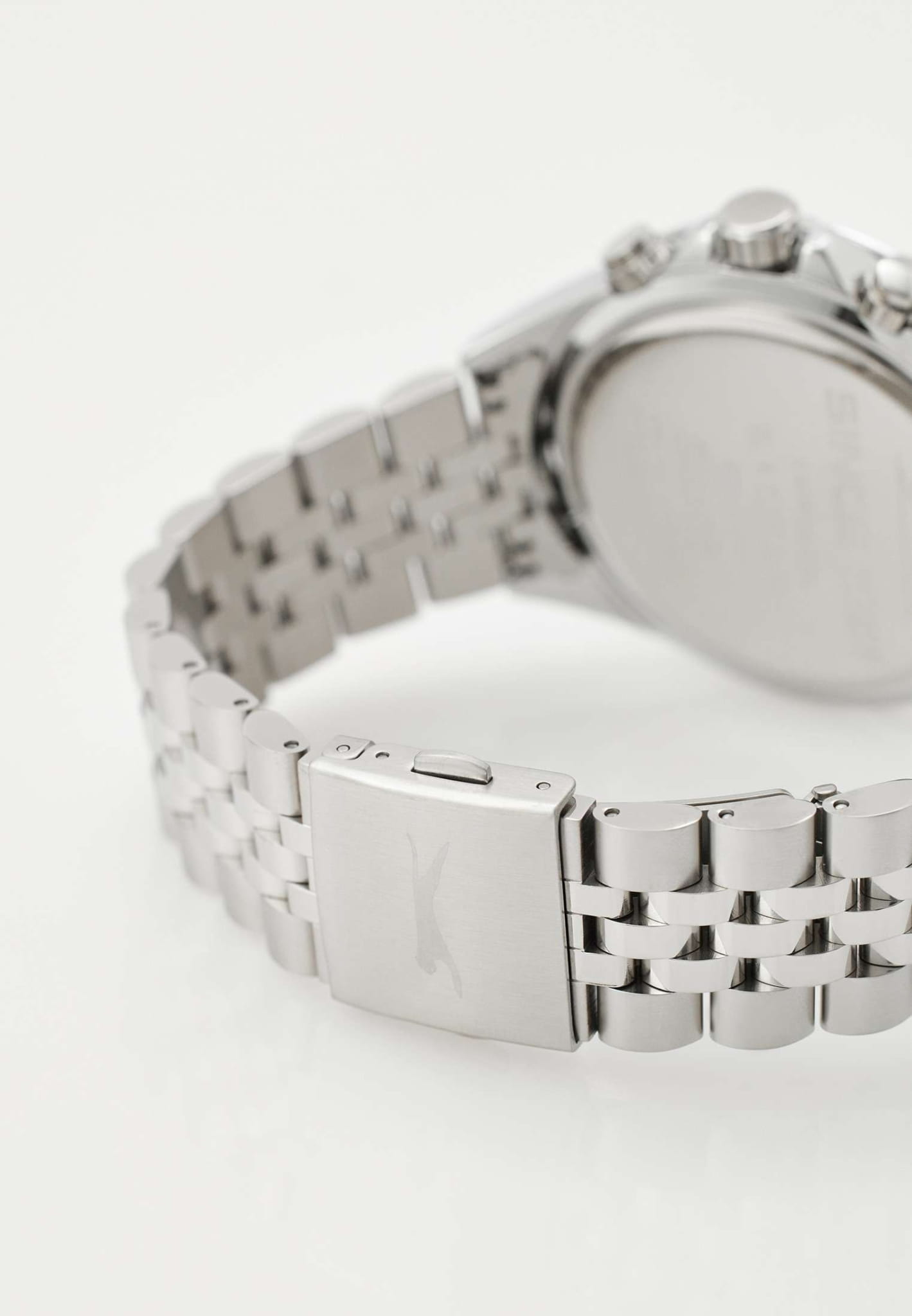 Часы Slazenger SL.09.2227.2.01 — это стильная и функциональная модель, созданная для современных мужчин, ценящих качество и надежность. Корпус из прочного металла и безельБезельВнешний ободок, закрепляющий стекло. В спортивных часах так называется поворотное кольцо с делениями на циферблате, выполняет роль таймера – замеряет отрезки времени на шкале. Неподвижный безель – элемент декора. Однонаправленно вращающийся безель на дайверских часах позволяет фиксировать моменты погружения и выныривания на поверхность. диаметром 46 мм и толщиной 12 мм придаёт часам солидный вид, а серебристый металлический браслет с раскладной застёжкойРаскладная застёжкаТакой тип застёжки используется только на браслетах из металла. Она никогда не раскрывается полностью, происходит разделение на 2 и более частей. Раскладывающая застёжка снизит вероятность потери часов к минимуму. обеспечивает удобство при ношении. Надежный кварцевый механизм гарантирует точность хода, а минеральное стеклоМинеральное стеклоМинеральное стекло представляет собой искусственно выращенный минерал кварца. Такое стекло отличается особой устойчивостью к повреждениям и царапинам. Уступает по некоторым качествам сапфировому стеклу. защищает градиентный черно-белый циферблат от царапин. Модель оснащена дополнительными малыми циферблатами, отображающими дату, день недели и текущее время в 24-часовом формате, что делает часы особенно практичными. Для удобства использования в темное время суток предусмотрено люминесцентное покрытиеЛюминесцентное покрытиеПозволяет считывать показания времени в темноте. Производители наносят на стрелки, часовые индексы, безель или поверхность циферблата светонакопительный состав, дающий холодное свечение. стрелок. Заводная головка имеет специальную защиту. Водозащита уровня WR 50 позволяет не беспокоиться о случайном попадании воды. Вес изделия составляет 161 грамм. Эти часы станут отличным выбором для тех, кто ценит элегантность и функциональность в одном аксессуаре.