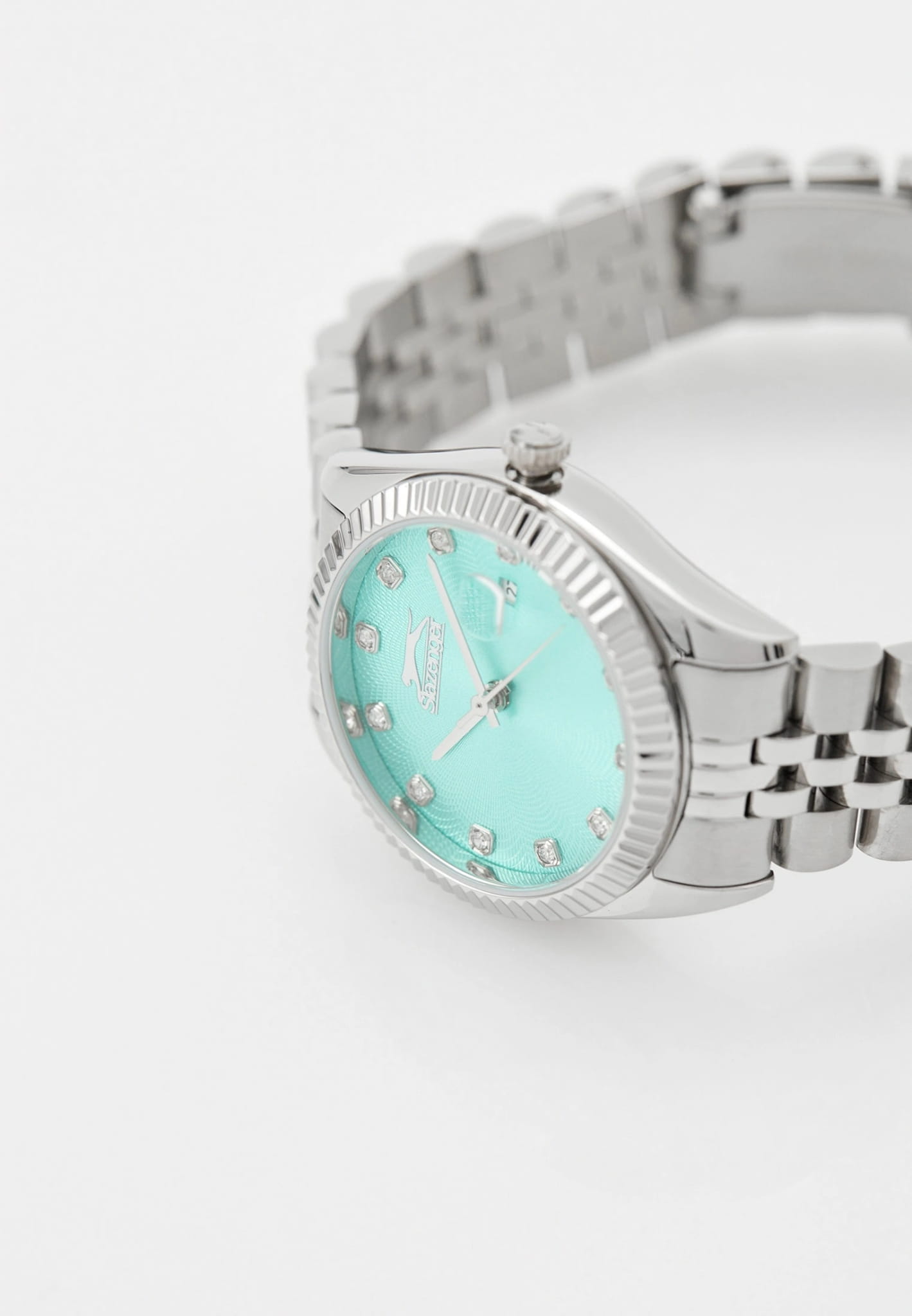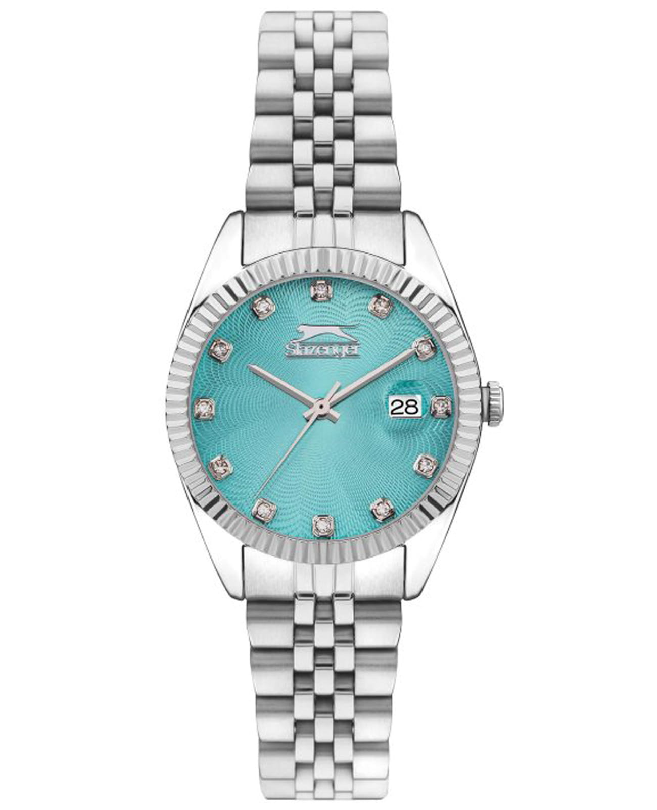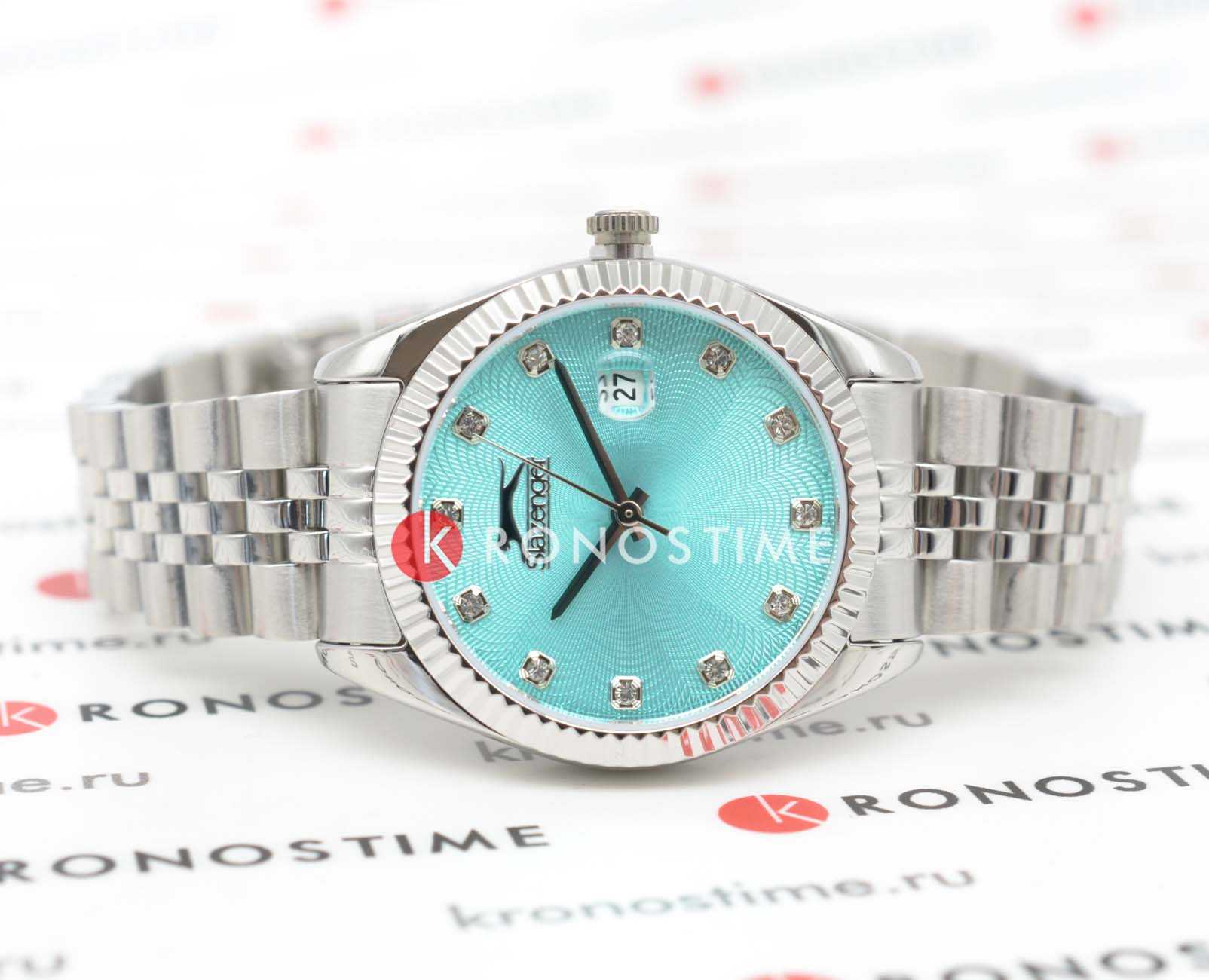 Женские наручные часы Slazenger SL.09.2240.3.06 сочетают в себе классический дизайн и надежность современных технологий. Модель обладает круглым корпусом диаметром 32 мм, изготовленным из суперметалла, что обеспечивает высокую устойчивость к внешним воздействиям. Циферблат голубого цвета декорирован серебристыми стрелками и индексами с фианитами. Браслет выполнен из суперметалла с раскладной застежкойРаскладной замокДанный вариант застежки используется только на часах с металлическим браслетом. Отличительная особенность такого крепления в том, что длина браслета становится универсальной и вы можете самостоятельно отрегулировать нужный вам размер – застежка просто двигается по браслету часов., гарантирующей комфортное ношение и безопасность. Корпус покрыт минеральным стекломМинеральное стеклоМинеральное стекло представляет собой искусственно выращенный минерал кварца. Такое стекло отличается особой устойчивостью к повреждениям и царапинам. Уступает по некоторым качествам сапфировому стеклу., обеспечивающее прочную защиту от царапин. Часы работают на кварцевом механизме, что гарантирует точное время без необходимости подзаводки. Водонепроницаемость часов достигает 3 атмосфер, что позволяет использовать их при мытье рук или хождении под мелким дождем, однако не рекомендуется для плавания или других водных видов спорта. Вес модели составляет 80 граммов.