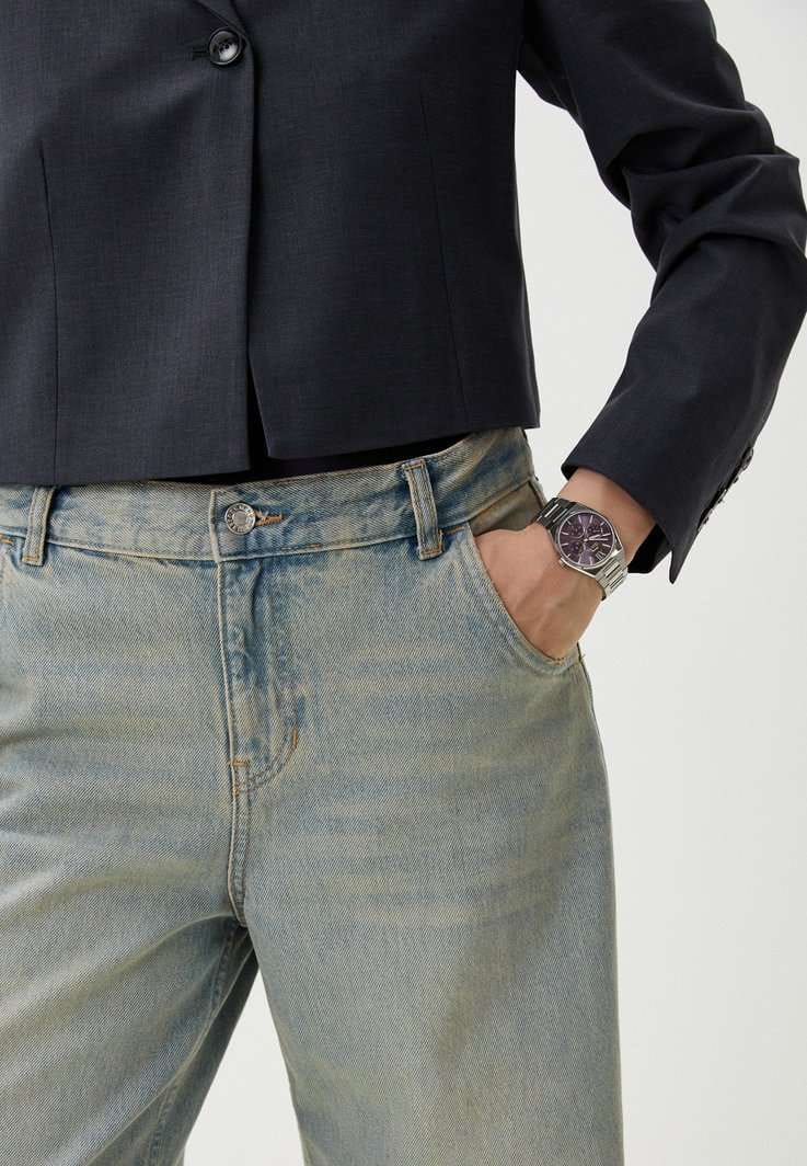 Часы Slazenger SL.09.2243.4.08 сочетают в себе элегантный дизайн и практичность для повседневного использования. Модель выполнена в изысканном серебряном цвете, корпус и браслет изготовлены из прочного металла, что обеспечивает надежность и долговечность изделия. Кварцевый механизм гарантирует точность хода, а минеральное стеклоМинеральное стеклоМинеральное стекло представляет собой искусственно выращенный минерал кварца. Такое стекло отличается особой устойчивостью к повреждениям и царапинам. Уступает по некоторым качествам сапфировому стеклу. защищает фиолетовый циферблат от механических повреждений. Диаметр корпуса составляет 34 мм, толщина — 9 мм, ширина ремешка — 20 мм, а общий вес часов — всего 87 грамм, что делает их легкими и комфортными на руке. Уровень водозащиты WR 30 позволяет не беспокоиться о случайных брызгах. Для удобства использования в темное время суток предусмотрено люминесцентное покрытиеЛюминесцентное покрытиеПозволяет считывать показания времени в темноте. Производители наносят на стрелки, часовые индексы, безель или поверхность циферблата светонакопительный состав, дающий холодное свечение. стрелок и меток. Дополнительные малые циферблаты отображают дату, день недели и время в 24-часовом формате. Часы оснащены металлическим браслетом с надежной раскладной застёжкойРаскладная застёжкаТакой тип застёжки используется только на браслетах из металла. Она никогда не раскрывается полностью, происходит разделение на 2 и более частей. Раскладывающая застёжка снизит вероятность потери часов к минимуму..