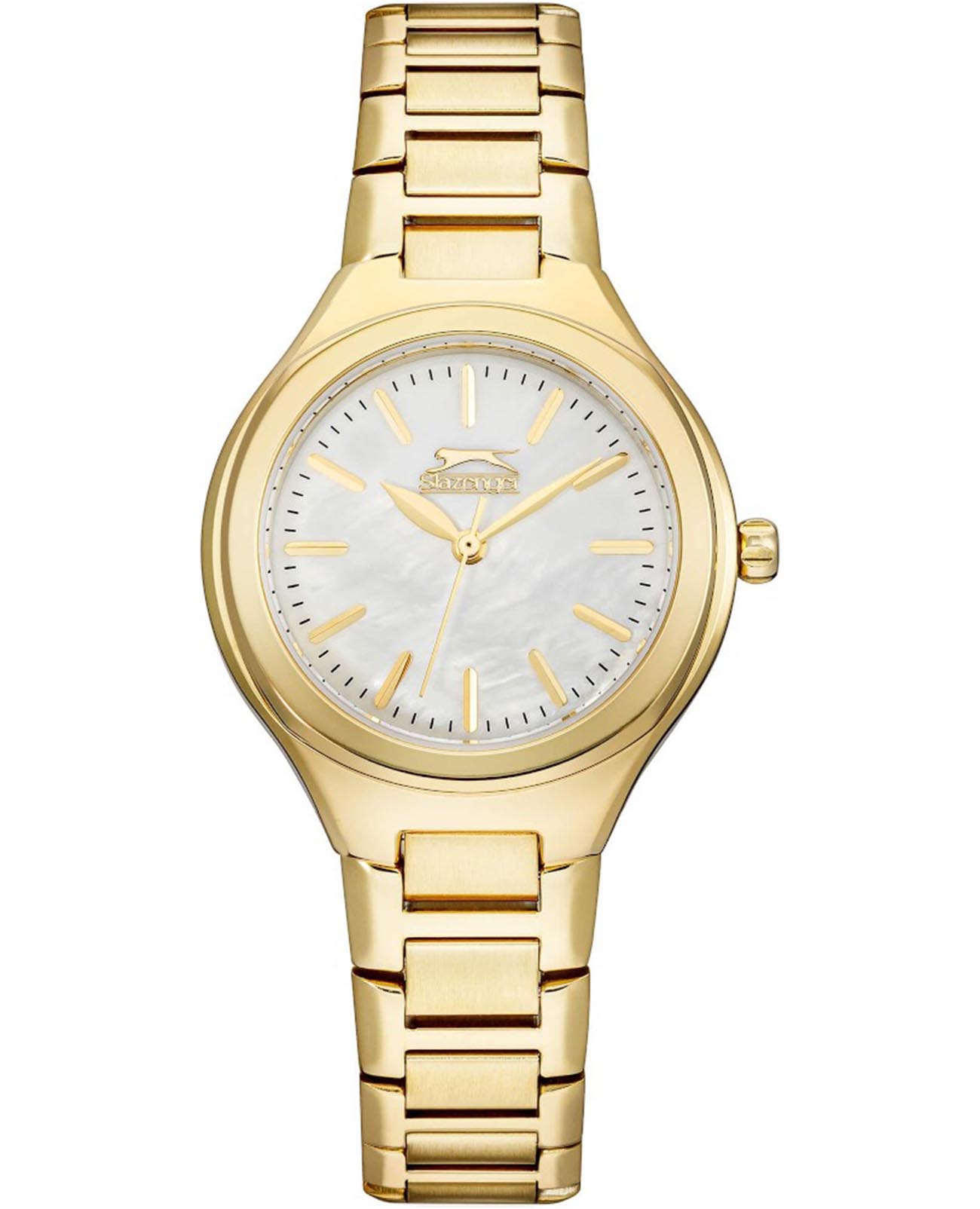 Часы Slazenger SL.09.2254.3.03 — это стильный и надежный аксессуар, который подчеркнет ваш индивидуальный образ. Корпус и браслет выполнены из инновационного суперметалла с изящным золотистым IP-покрытиемIP-покрытиеМетод ионного напыления. Демонстрирует повышенную устойчивость к истиранию, окислению и химическим веществам. Под воздействием высокого давления и температуры около 1500°C молекулы металла надёжно соединяются с частицами корпуса часов., обладающего особой прочностью и долговечностью благодаря специальной технологии покрытия. Модель оснащена точным кварцевым механизмом, который обеспечивает стабильную работу и не требует ежедневного завода. Под прочным минеральным стекломМинеральное стеклоМинеральное стекло представляет собой искусственно выращенный минерал кварца. Такое стекло отличается особой устойчивостью к повреждениям и царапинам. Уступает по некоторым качествам сапфировому стеклу. расположен лаконичный перламутровый циферблат, придающий часам элегантный и современный вид. Стальной браслет с раскладной застёжкойРаскладная застёжкаТакой тип застёжки используется только на браслетах из металла. Она никогда не раскрывается полностью, происходит разделение на 2 и более частей. Раскладывающая застёжка снизит вероятность потери часов к минимуму. обеспечивает комфортную посадку. Диаметр корпуса составляет 32 мм, толщина — 8 мм, что делает часы аккуратными и удобными для повседневного ношения. Класс водозащиты 3 атмосферы защищает механизм от случайных брызг и капель дождя.