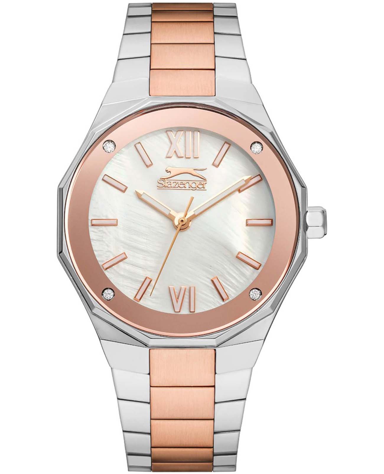 Часы Slazenger SL.09.2258.3.02 — это изысканный аксессуар, который гармонично подчеркнёт ваш индивидуальный стиль. Корпус и браслет выполнены из инновационного суперметалла — сплава на основе меди с пониженным содержанием цинка и никеля, обладающего специальным защитным покрытием, а циферблат украшен 4 кристаллами. Надёжный кварцевый механизм обеспечивает точный ход, а прочное минеральное стеклоМинеральное стеклоМинеральное стекло представляет собой искусственно выращенный минерал кварца. Такое стекло отличается особой устойчивостью к повреждениям и царапинам. Уступает по некоторым качествам сапфировому стеклу. устойчиво к царапинам и защищает перламутровый циферблат от внешних воздействий. Диаметр корпуса составляет 38 мм, толщина — всего 8 мм, что делает модель элегантной и удобной для ежедневного ношения. Водонепроницаемость до 3 бар позволяет не беспокоиться о случайных брызгах или каплях дождя. Стрелки с люминесцентным покрытиемЛюминесцентное покрытиеПозволяет считывать показания времени в темноте. Производители наносят на стрелки, часовые индексы, безель или поверхность циферблата светонакопительный состав, дающий холодное свечение. удобно подсвечиваются в темноте после зарядки на свету. Стальной браслет с частичным розово-золотистым IP-покрытиемIP-покрытиеМетод ионного напыления. Демонстрирует повышенную устойчивость к истиранию, окислению и химическим веществам. Под воздействием высокого давления и температуры около 1500°C молекулы металла надёжно соединяются с частицами корпуса часов. и раскладной застёжкойРаскладная застёжкаТакой тип застёжки используется только на браслетах из металла. Она никогда не раскрывается полностью, происходит разделение на 2 и более частей. Раскладывающая застёжка снизит вероятность потери часов к минимуму. обеспечивает комфортную посадку. Часы станут отличным выбором как для повседневной жизни, так и для особых случаев, а также послужат прекрасным подарком на любой праздник.