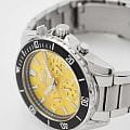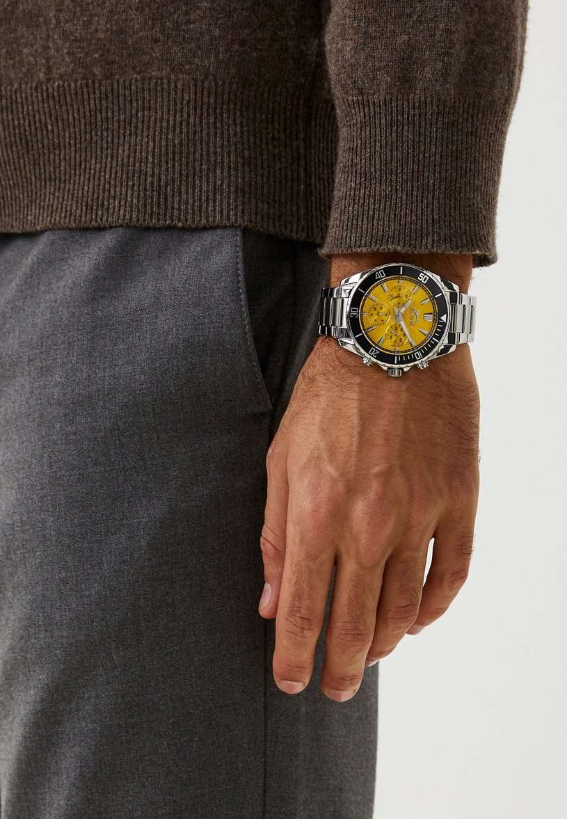 Часы Slazenger SL.09.2273.2.04 – стильный и функциональный аксессуар, который станет достойным дополнением к вашему образу. Модель оснащена надежным кварцевым механизмом, заключенным в корпус из инновационного суперметалла – прочного сплава на основе меди с пониженным содержанием цинка и никеля и специальным покрытием, устойчивым к износу. На безельБезельВнешний ободок, закрепляющий стекло. В спортивных часах так называется поворотное кольцо с делениями на циферблате, выполняет роль таймера – замеряет отрезки времени на шкале. Неподвижный безель – элемент декора. Однонаправленно вращающийся безель на дайверских часах позволяет фиксировать моменты погружения и выныривания на поверхность. нанесено черное IP-покрытиеIP-покрытиеМетод ионного напыления. Демонстрирует повышенную устойчивость к истиранию, окислению и химическим веществам. Под воздействием высокого давления и температуры около 1500°C молекулы металла надёжно соединяются с частицами корпуса часов., что придает аксессуару утончённый и универсальный внешний вид. Желтый циферблат под минеральным стекломМинеральное стеклоМинеральное стекло представляет собой искусственно выращенный минерал кварца. Такое стекло отличается особой устойчивостью к повреждениям и царапинам. Уступает по некоторым качествам сапфировому стеклу. дополнен отдельными счетчиками: 24-часовой указатель времени, индикаторы даты и дня недели. Диаметр корпуса составляет 44 мм, а толщина – 12 мм, что обеспечивает комфортную посадку на запястье и подчёркивает современный стиль часов. Браслет из суперметалла и с раскладной застёжкойРаскладная застёжкаТакой тип застёжки используется только на браслетах из металла. Она никогда не раскрывается полностью, происходит разделение на 2 и более частей. Раскладывающая застёжка снизит вероятность потери часов к минимуму. обеспечивает комфортную посадку. Стрелки и метки с люминесцентным покрытиемЛюминесцентное покрытиеПозволяет считывать показания времени в темноте. Производители наносят на стрелки, часовые индексы, безель или поверхность циферблата светонакопительный состав, дающий холодное свечение. удобно подсвечиваются в темноте после зарядки на свету. Водонепроницаемость 5 АТМ защищает механизм от брызг и дождя, позволяя не беспокоиться о сохранности аксессуара в повседневной жизни. Эта модель станет отличным выбором для ежедневного ношения или особых случаев и прекрасным подарком для мужчины к любому празднику.
