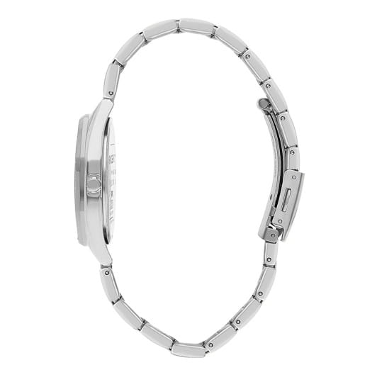 Женские кварцевые часы Slazenger SL.09.2301.3.10 — это элегантный и изысканный аксессуар, подчеркивающий стиль и утончённость. Корпус из суперметалла, браслет из суперметалла с IP-покрытиемIP-покрытиеМетод ионного напыления. Демонстрирует повышенную устойчивость к истиранию, окислению и химическим веществам. Под воздействием высокого давления и температуры около 1500°C молекулы металла надёжно соединяются с частицами корпуса часов., защищён минеральным стекломМинеральное стеклоМинеральное стекло представляет собой искусственно выращенный минерал кварца. Такое стекло отличается особой устойчивостью к повреждениям и царапинам. Уступает по некоторым качествам сапфировому стеклу.. Циферблат зелёного цвета с волнистым рельефным рисунком оформлен штриховыми метками и римскими цифрами VI и XII, дополнен логотипом бренда. Безель гранёный, украшен паве из фианитов, придающих модели изысканное сияние. Заводная головка — граненая, добавляющая детали дизайна. Браслет фиксируется на раскладной застёжкеРаскладная застёжкаТакой тип застёжки используется только на браслетах из металла. Она никогда не раскрывается полностью, происходит разделение на 2 и более частей. Раскладывающая застёжка снизит вероятность потери часов к минимуму., обеспечивая надёжность и комфорт ношения. Водонепроницаемость 30 м позволяет использовать часы в повседневных условиях, защищая от случайных брызг и капель дождя. Модель идеально подходит как для повседневного, так и для торжественного образа.