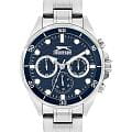 Мужские кварцевые часы Slazenger SL.09.2309.2.03 — это выразительный и функциональный аксессуар, сочетающий прочность, стиль и насыщенную комплектацию. Корпус и браслет выполнены из суперметалла, защищён минеральным стекломМинеральное стеклоМинеральное стекло представляет собой искусственно выращенный минерал кварца. Такое стекло отличается особой устойчивостью к повреждениям и царапинам. Уступает по некоторым качествам сапфировому стеклу.. Циферблат синего цвета оформлен с вынесенными малыми циферблатами для индикации дня недели, даты и времени в 24-часовом формате. Стрелки и метки оснащены люминесцентным покрытиемЛюминесцентное покрытиеПозволяет считывать показания времени в темноте. Производители наносят на стрелки, часовые индексы, безель или поверхность циферблата светонакопительный состав, дающий холодное свечение., обеспечивающим хорошую читаемость в темноте. Заводная головка снабжена защитой, а задняя крышка — завинчивающаяся, что повышает надёжность конструкции. Браслет фиксируется на раскладной застёжкеРаскладная застёжкаТакой тип застёжки используется только на браслетах из металла. Она никогда не раскрывается полностью, происходит разделение на 2 и более частей. Раскладывающая застёжка снизит вероятность потери часов к минимуму., обеспечивая удобство и безопасность ношения. Водонепроницаемость 50 м позволяет использовать часы в повседневных условиях, защищая от случайных брызг и капель дождя. Модель подчёркивает индивидуальность владельца и идеально подходит как для повседневного, так и для делового образа.