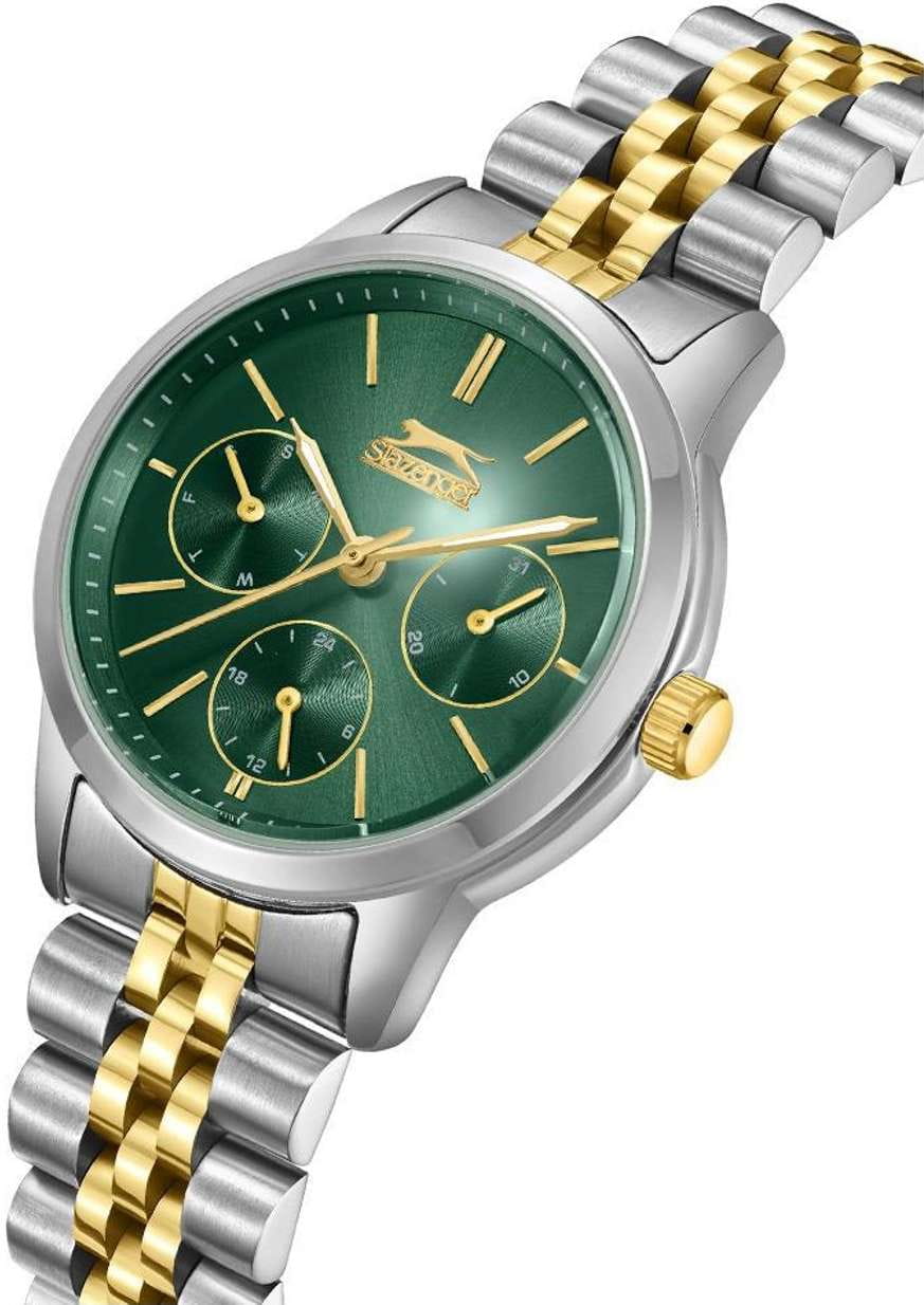 Женские элегантные наручные часы Slazenger SL.09.2336.4.04 сочетают в себе современный стиль и функциональность. Корпус выполнен из суперметалла , придающий модели дополнительную прочность и элегантный внешний вид. Изысканный циферблат защищён минеральным стекломМинеральное стеклоМинеральное стекло представляет собой искусственно выращенный минерал кварца. Такое стекло отличается особой устойчивостью к повреждениям и царапинам. Уступает по некоторым качествам сапфировому стеклу., устойчивым к царапинам и повреждениям. Водонепроницаемость 3 АТМ позволяет использовать часы в повседневных условиях — при мытье рук или под лёгким дождём. Часы оснащены дополнительными циферблатами, отображающими дату, день недели и 24-часовой формат времени, что добавляет практичности в повседневном использовании. Браслет из суперметалла с IP-покрытиемIP-покрытиеМетод ионного напыления. Демонстрирует повышенную устойчивость к истиранию, окислению и химическим веществам. Под воздействием высокого давления и температуры около 1500°C молекулы металла надёжно соединяются с частицами корпуса часов. и с раскладной застёжкойРаскладная застёжкаТакой тип застёжки используется только на браслетах из металла. Она никогда не раскрывается полностью, происходит разделение на 2 и более частей. Раскладывающая застёжка снизит вероятность потери часов к минимуму. обеспечивает надёжную фиксацию и комфорт при ношении. Эта модель идеально подходит для женщин, ценящих стиль, функциональность и надёжность в одном аксессуаре.