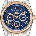 Женские кварцевые часы Slazenger SL.09.2343.4.05 – это сочетание элегантности, современного стиля и надёжности. Изящный корпус из суперметалла серебристого цвета, диаметром 36 мм и толщиной 10.5 мм, подчёркивает утончённость модели и делает их идеальным аксессуаром для любой ситуации – будь то деловая встреча, романтический вечер или повседневные выходы. Циферблат надёжно защищён минеральным стекломМинеральное стеклоМинеральное стекло представляет собой искусственно выращенный минерал кварца. Такое стекло отличается особой устойчивостью к повреждениям и царапинам. Уступает по некоторым качествам сапфировому стеклу., которое устойчиво к механическим повреждениям и сохраняет кристальную прозрачность. Рифленый неподвижный безельБезельВнешний ободок, закрепляющий стекло. В спортивных часах так называется поворотное кольцо с делениями на циферблате, выполняет роль таймера – замеряет отрезки времени на шкале. Неподвижный безель – элемент декора. Однонаправленно вращающийся безель на дайверских часах позволяет фиксировать моменты погружения и выныривания на поверхность. с IP-покрытиемIP-покрытиеМетод ионного напыления. Демонстрирует повышенную устойчивость к истиранию, окислению и химическим веществам. Под воздействием высокого давления и температуры около 1500°C молекулы металла надёжно соединяются с частицами корпуса часов. золотистого цвета. Браслет из суперметалла с частичным IP-покрытиемIP-покрытиеМетод ионного напыления. Демонстрирует повышенную устойчивость к истиранию, окислению и химическим веществам. Под воздействием высокого давления и температуры около 1500°C молекулы металла надёжно соединяются с частицами корпуса часов. удобно облегает запястье и фиксируется с помощью раскладной застёжкиРаскладная застёжкаТакой тип застёжки используется только на браслетах из металла. Она никогда не раскрывается полностью, происходит разделение на 2 и более частей. Раскладывающая застёжка снизит вероятность потери часов к минимуму., обеспечивая надёжность и комфорт в повседневном ношении. Утончённый стиль, внимание к деталям и практичность делают эту модель идеальным выбором для современных женщин, ценящих эстетику и функциональность. Вынесенный циферблат с 24-х часовым указателем времени. Водозащита до 30 метров позволит защитить корпус от случайных брызг или капель дождя.