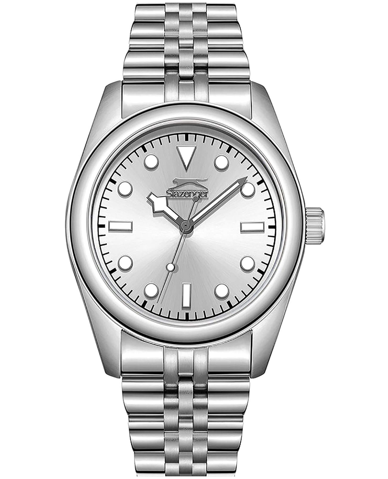 Мужские кварцевые часы Slazenger SL.09.2354.1.01 – идеальное сочетание классического дизайна и современных технологий, созданное для уверенных в себе мужчин. Корпус выполнен из суперметалла серебристого цвета, диаметром 41 мм и толщиной 12 мм, подчёркивает надежность модели и делает их идеальным аксессуаром для любой ситуации – будь то деловая встреча или повседневные выходы. Циферблат надёжно защищён минеральным стекломМинеральное стеклоМинеральное стекло представляет собой искусственно выращенный минерал кварца. Такое стекло отличается особой устойчивостью к повреждениям и царапинам. Уступает по некоторым качествам сапфировому стеклу., которое устойчиво к механическим повреждениям и сохраняет кристальную прозрачность. Браслет из суперметалла удобно облегает запястье и фиксируется с помощью раскладной застёжкиРаскладная застёжкаТакой тип застёжки используется только на браслетах из металла. Она никогда не раскрывается полностью, происходит разделение на 2 и более частей. Раскладывающая застёжка снизит вероятность потери часов к минимуму., обеспечивая надёжность и комфорт в повседневном ношении. Стрелки и метки покрыты люминесцентным покрытиемЛюминесцентное покрытиеПозволяет считывать показания времени в темноте. Производители наносят на стрелки, часовые индексы, безель или поверхность циферблата светонакопительный состав, дающий холодное свечение., обеспечивающим отличную читаемость в темноте. Эти часы станут не просто аксессуаром, а надежным спутником в любой ситуации, подчеркивая ваш безупречный вкус и деловой стиль. Водозащита до 50 метров позволит защитить корпус от случайных брызг или капель дождя.