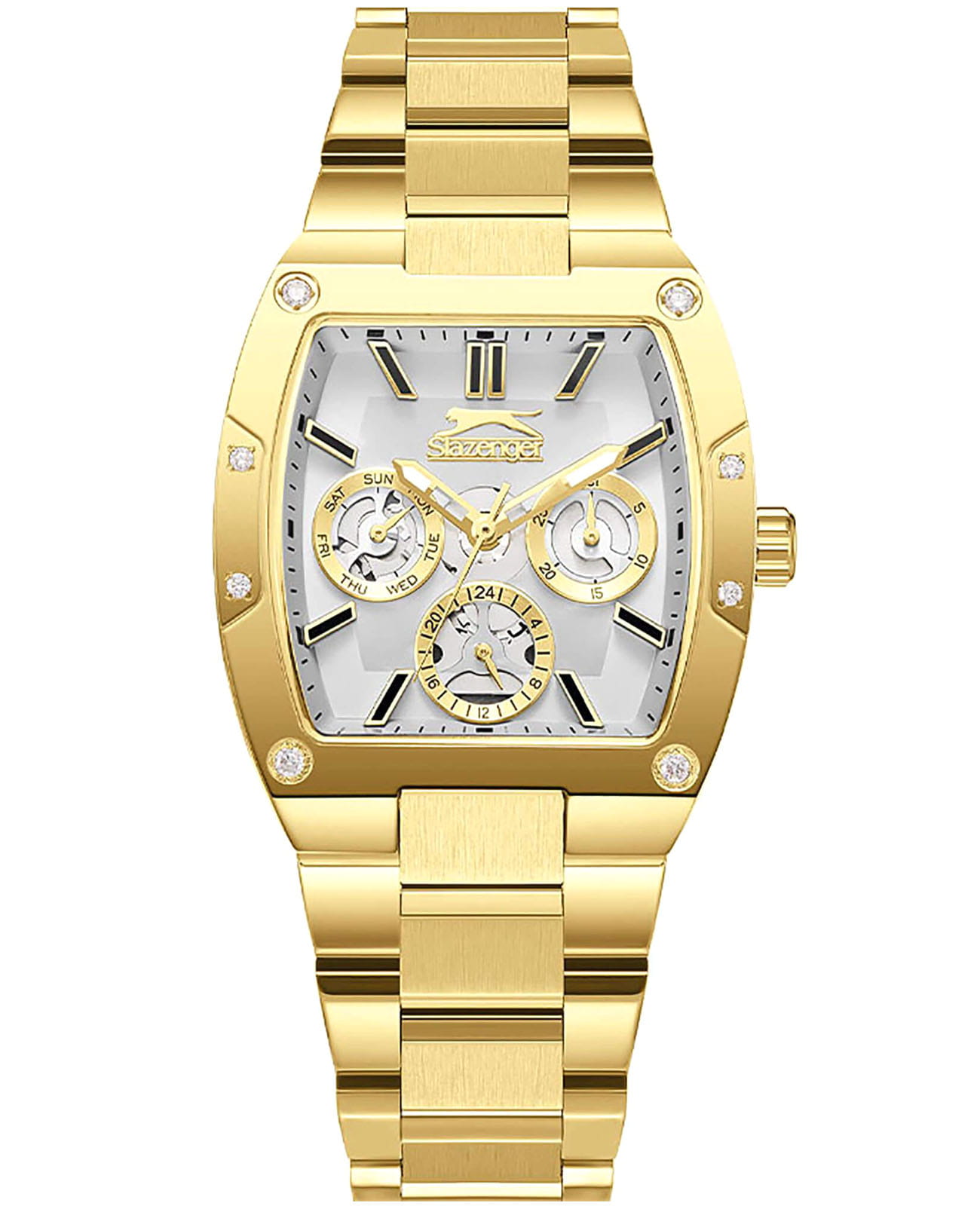Женские кварцевые часы Slazenger SL.09.2357.4.03 – это сочетание элегантности, современного стиля и надёжности. Изящный корпус из суперметалла с IP-покрытиемIP-покрытиеМетод ионного напыления. Демонстрирует повышенную устойчивость к истиранию, окислению и химическим веществам. Под воздействием высокого давления и температуры около 1500°C молекулы металла надёжно соединяются с частицами корпуса часов. золотистого цвета, размером 32 мм х 33 мм и толщиной 10 мм, подчёркивает утончённость модели и делает их идеальным аксессуаром для любой ситуации – будь то деловая встреча, романтический вечер или повседневные выходы. Циферблат надёжно защищён минеральным стекломМинеральное стеклоМинеральное стекло представляет собой искусственно выращенный минерал кварца. Такое стекло отличается особой устойчивостью к повреждениям и царапинам. Уступает по некоторым качествам сапфировому стеклу., которое устойчиво к механическим повреждениям и сохраняет кристальную прозрачность. Браслет из суперметалла с IP-покрытиемIP-покрытиеМетод ионного напыления. Демонстрирует повышенную устойчивость к истиранию, окислению и химическим веществам. Под воздействием высокого давления и температуры около 1500°C молекулы металла надёжно соединяются с частицами корпуса часов. удобно облегает запястье и фиксируется с помощью раскладной застёжкиРаскладная застёжкаТакой тип застёжки используется только на браслетах из металла. Она никогда не раскрывается полностью, происходит разделение на 2 и более частей. Раскладывающая застёжка снизит вероятность потери часов к минимуму., обеспечивая надёжность и комфорт в повседневном ношении. Утончённый стиль, внимание к деталям и практичность делают эту модель идеальным выбором для современных женщин, ценящих эстетику и функциональность. Стрелки и метки покрыты люминесцентным покрытиемЛюминесцентное покрытиеПозволяет считывать показания времени в темноте. Производители наносят на стрелки, часовые индексы, безель или поверхность циферблата светонакопительный состав, дающий холодное свечение., обеспечивающим отличную читаемость в темноте. Вынесенный циферблат с 24-х часовым указателем времени. Водозащита до 30 метров позволит защитить корпус от случайных брызг или капель дождя.