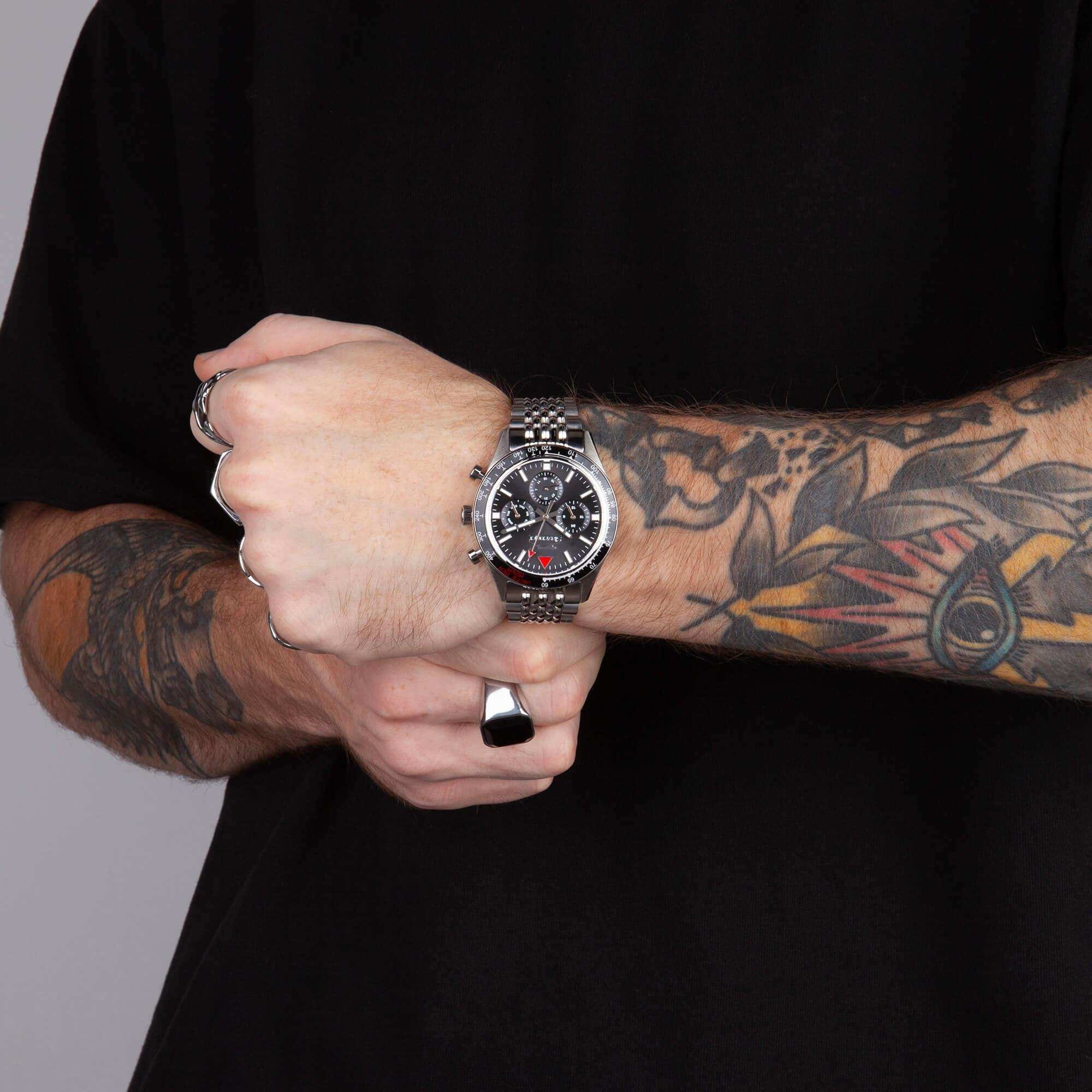 Мужские кварцевые часы Slazenger SL.09.2360.2.01 – идеальное сочетание классического дизайна и современных технологий, созданное для уверенных в себе мужчин. Корпус выполнен из суперметалла серебристого цвета, диаметром 43 мм и толщиной 12 мм, подчёркивает надежность модели и делает их идеальным аксессуаром для любой ситуации – будь то деловая встреча или повседневные выходы. Циферблат надёжно защищён минеральным стекломМинеральное стеклоМинеральное стекло представляет собой искусственно выращенный минерал кварца. Такое стекло отличается особой устойчивостью к повреждениям и царапинам. Уступает по некоторым качествам сапфировому стеклу., которое устойчиво к механическим повреждениям и сохраняет кристальную прозрачность. Неподвижный безельБезельВнешний ободок, закрепляющий стекло. В спортивных часах так называется поворотное кольцо с делениями на циферблате, выполняет роль таймера – замеряет отрезки времени на шкале. Неподвижный безель – элемент декора. Однонаправленно вращающийся безель на дайверских часах позволяет фиксировать моменты погружения и выныривания на поверхность. с IP-покрытиемIP-покрытиеМетод ионного напыления. Демонстрирует повышенную устойчивость к истиранию, окислению и химическим веществам. Под воздействием высокого давления и температуры около 1500°C молекулы металла надёжно соединяются с частицами корпуса часов. черного цвета. Стальной браслет на раскладной застёжкеРаскладная застёжкаТакой тип застёжки используется только на браслетах из металла. Она никогда не раскрывается полностью, происходит разделение на 2 и более частей. Раскладывающая застёжка снизит вероятность потери часов к минимуму. удобно облегает запястье, обеспечивая надёжность и комфорт в повседневном ношении. Стрелки и метки покрыты люминесцентным покрытиемЛюминесцентное покрытиеПозволяет считывать показания времени в темноте. Производители наносят на стрелки, часовые индексы, безель или поверхность циферблата светонакопительный состав, дающий холодное свечение., обеспечивающим отличную читаемость в темноте. Эти часы станут не просто аксессуаром, а надежным спутником в любой ситуации, подчеркивая ваш безупречный вкус и деловой стиль. Вынесенный циферблат с 24-х часовым указателем времени и функция тахиметраТахиметрРазмеченная шкала, располагается на ободке или безеле часов. Тахиметр позволяет рассчитать скорость на определённом участке пути, расстояние измеряется в километрах или милях.. Водозащита 50 метров позволит защитить корпус от случайных брызг или капель дождя.