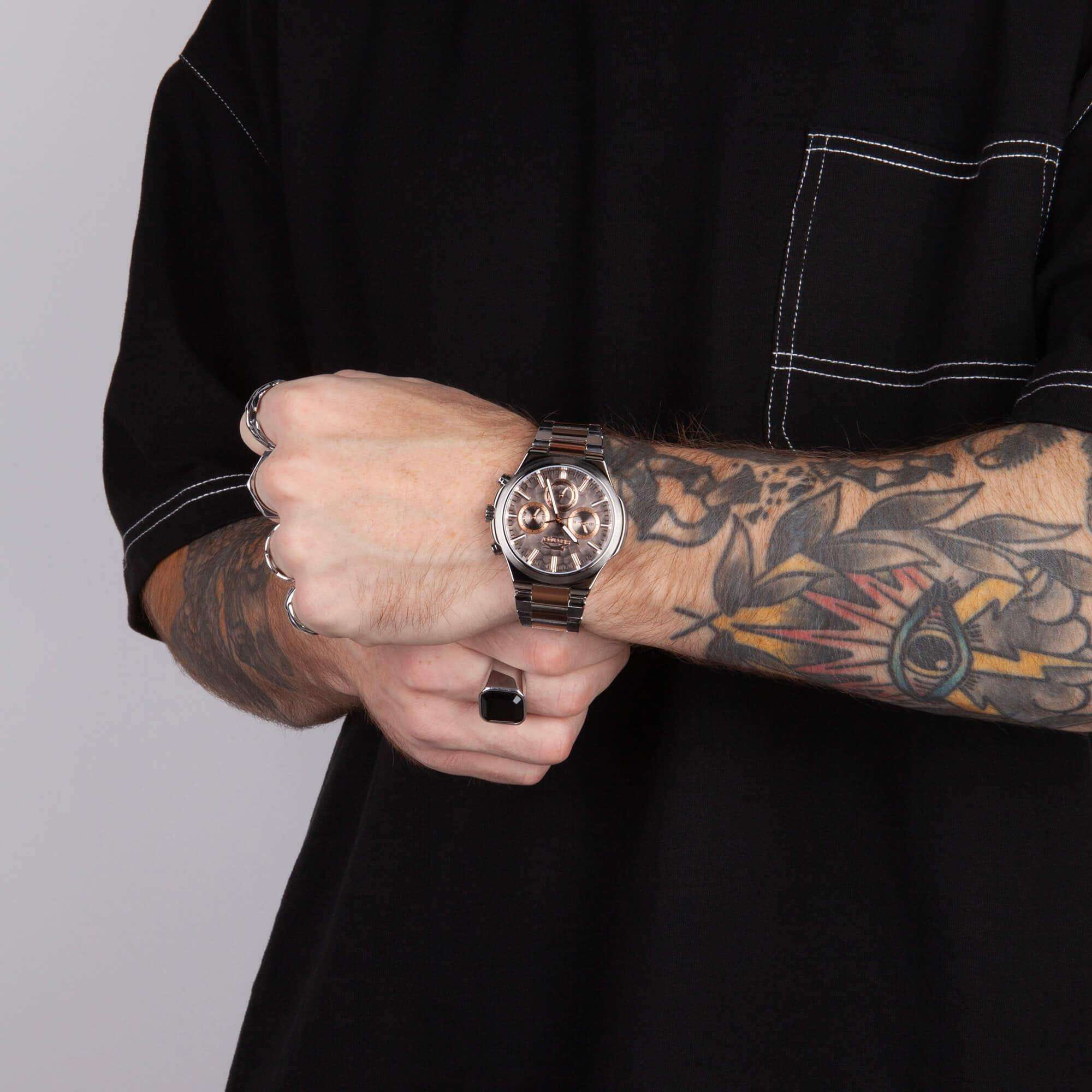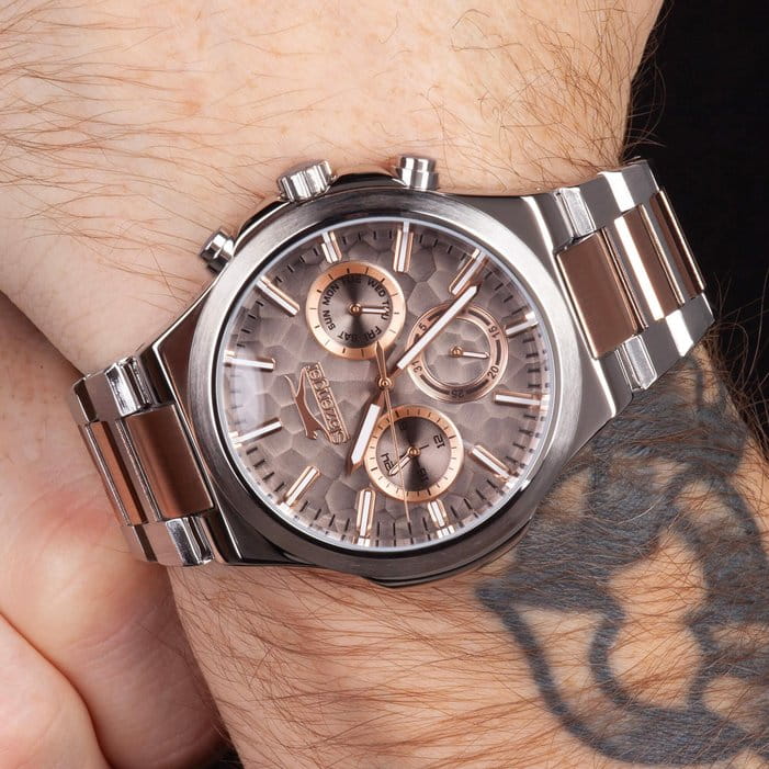 Мужские кварцевые часы Slazenger SL.09.2364.2.02 – идеальное сочетание классического дизайна и современных технологий, созданное для уверенных в себе мужчин. Корпус выполнен из суперметалла серебристого цвета, диаметром 42 мм и толщиной 13 мм, подчёркивает надежность модели и делает их идеальным аксессуаром для любой ситуации – будь то деловая встреча или повседневные выходы. Циферблат надёжно защищён минеральным стекломМинеральное стеклоМинеральное стекло представляет собой искусственно выращенный минерал кварца. Такое стекло отличается особой устойчивостью к повреждениям и царапинам. Уступает по некоторым качествам сапфировому стеклу., которое устойчиво к механическим повреждениям и сохраняет кристальную прозрачность. Стальной браслет с частичным IP-покрытиемIP-покрытиеМетод ионного напыления. Демонстрирует повышенную устойчивость к истиранию, окислению и химическим веществам. Под воздействием высокого давления и температуры около 1500°C молекулы металла надёжно соединяются с частицами корпуса часов. на раскладной застёжкеРаскладная застёжкаТакой тип застёжки используется только на браслетах из металла. Она никогда не раскрывается полностью, происходит разделение на 2 и более частей. Раскладывающая застёжка снизит вероятность потери часов к минимуму. удобно облегает запястье, обеспечивая надёжность и комфорт в повседневном ношении. Стрелки и метки покрыты люминесцентным покрытиемЛюминесцентное покрытиеПозволяет считывать показания времени в темноте. Производители наносят на стрелки, часовые индексы, безель или поверхность циферблата светонакопительный состав, дающий холодное свечение., обеспечивающим отличную читаемость в темноте. Эти часы станут не просто аксессуаром, а надежным спутником в любой ситуации, подчеркивая ваш безупречный вкус и деловой стиль. Вынесенный циферблат с 24-х часовым указателем времени. Водозащита 50 метров позволит защитить корпус от случайных брызг или капель дождя.