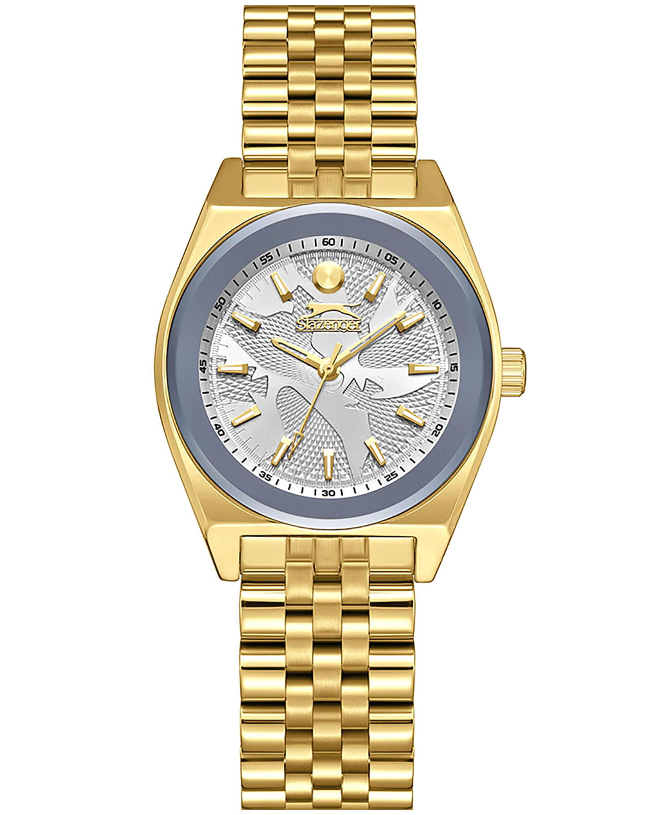 Женские кварцевые часы Slazenger SL.09.2376.3.05 – это сочетание элегантности, современного стиля и надёжности. Изящный корпус из суперметалла с IP-покрытиемIP-покрытиеМетод ионного напыления. Демонстрирует повышенную устойчивость к истиранию, окислению и химическим веществам. Под воздействием высокого давления и температуры около 1500°C молекулы металла надёжно соединяются с частицами корпуса часов. золотистого цвета, диаметром 32 мм и толщиной 9 мм, подчёркивает утончённость модели и делает их идеальным аксессуаром для любой ситуации – будь то деловая встреча, романтический вечер или повседневные выходы. Циферблат надёжно защищён минеральным стекломМинеральное стеклоМинеральное стекло представляет собой искусственно выращенный минерал кварца. Такое стекло отличается особой устойчивостью к повреждениям и царапинам. Уступает по некоторым качествам сапфировому стеклу., которое устойчиво к механическим повреждениям и сохраняет кристальную прозрачность. Неподвижный безельБезельВнешний ободок, закрепляющий стекло. В спортивных часах так называется поворотное кольцо с делениями на циферблате, выполняет роль таймера – замеряет отрезки времени на шкале. Неподвижный безель – элемент декора. Однонаправленно вращающийся безель на дайверских часах позволяет фиксировать моменты погружения и выныривания на поверхность. с IP-покрытиемIP-покрытиеМетод ионного напыления. Демонстрирует повышенную устойчивость к истиранию, окислению и химическим веществам. Под воздействием высокого давления и температуры около 1500°C молекулы металла надёжно соединяются с частицами корпуса часов. серого цвета. Браслет из суперметалла удобно облегает запястье и фиксируется с помощью раскладной застёжкиРаскладная застёжкаТакой тип застёжки используется только на браслетах из металла. Она никогда не раскрывается полностью, происходит разделение на 2 и более частей. Раскладывающая застёжка снизит вероятность потери часов к минимуму., обеспечивая надёжность и комфорт в повседневном ношении. Утончённый стиль, внимание к деталям и практичность делают эту модель идеальным выбором для современных женщин, ценящих эстетику и функциональность. Метки покрыты люминесцентным покрытиемЛюминесцентное покрытиеПозволяет считывать показания времени в темноте. Производители наносят на стрелки, часовые индексы, безель или поверхность циферблата светонакопительный состав, дающий холодное свечение., обеспечивающим отличную читаемость в темноте. Водозащита до 30 метров позволит защитить корпус от случайных брызг или капель дождя.