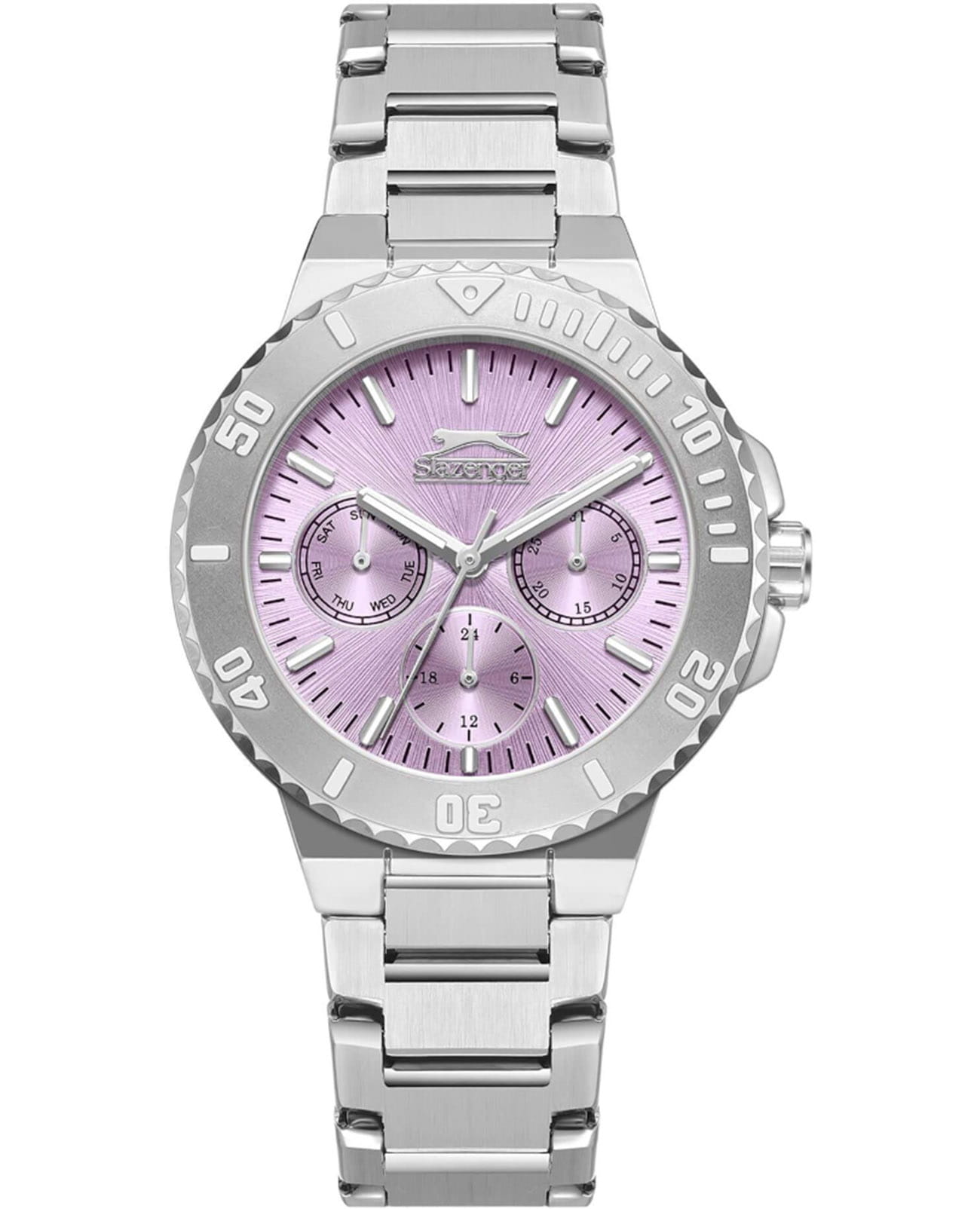 Женские кварцевые часы Slazenger — это выразительный и функциональный аксессуар. Корпус диаметром 36 мм и толщиной 9,5 мм выполнен из суперметалла. Циферблат розового цвета оформлен индексами и стрелками. Циферблат защищён минеральным стекломМинеральное стеклоМинеральное стекло представляет собой искусственно выращенный минерал кварца. Такое стекло отличается особой устойчивостью к повреждениям и царапинам. Уступает по некоторым качествам сапфировому стеклу.. Механизм — кварцевый. Часы оснащены индикацией дня недели, даты и 12/24-часового формата времени. Часы оснащены браслетом из суперметалла с раскладной застёжкойРаскладная застёжкаТакой тип застёжки используется только на браслетах из металла. Она никогда не раскрывается полностью, происходит разделение на 2 и более частей. Раскладывающая застёжка снизит вероятность потери часов к минимуму.. Водонепроницаемость 50 м позволяет использовать часы в повседневных условиях. Гарантия — 12 месяцев. Идеальный выбор для тех, кто ценит стиль, функциональность и качество.