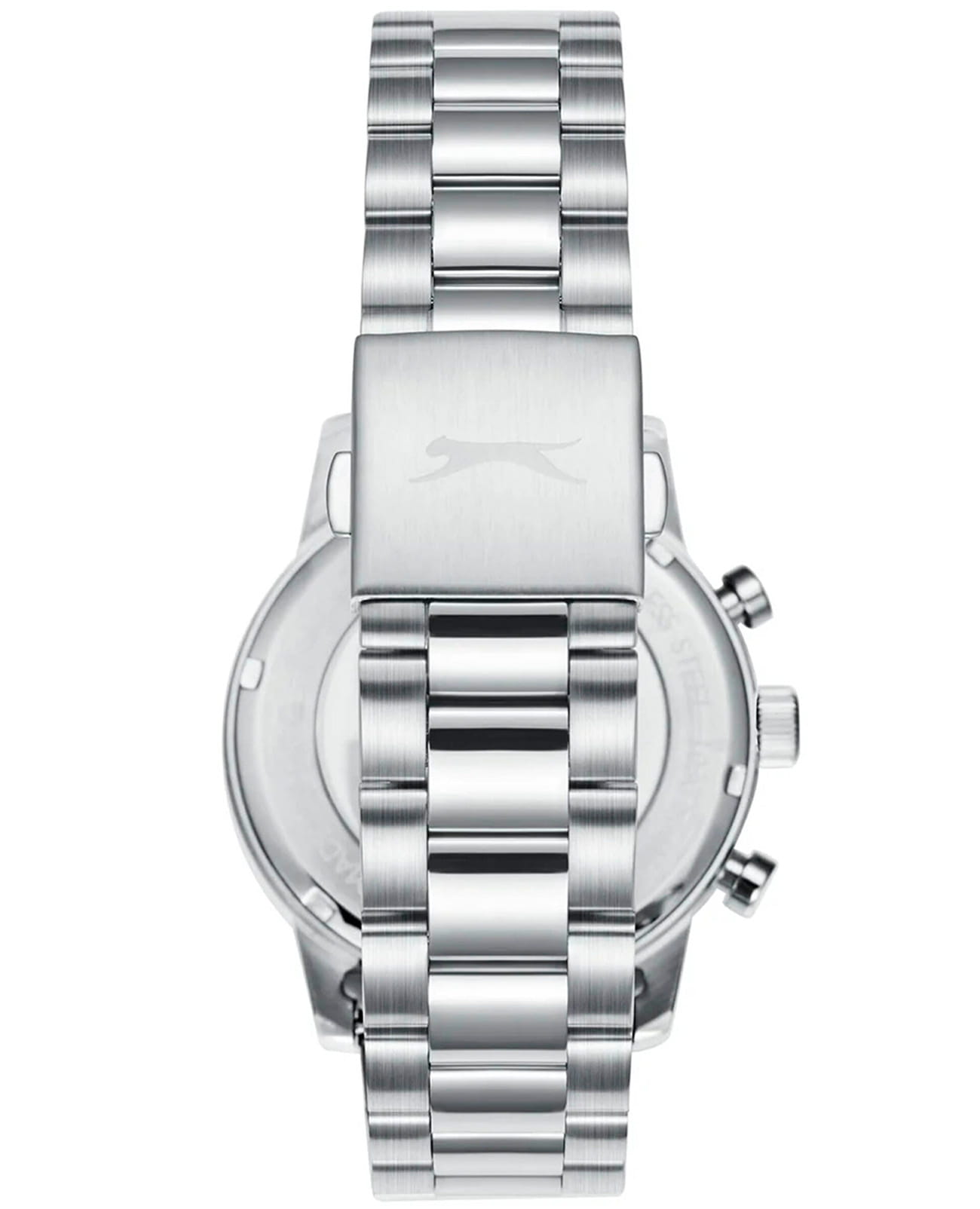 Мужские кварцевые часы Slazenger — это выразительный и функциональный аксессуар. Корпус диаметром 42 мм и толщиной 12 мм выполнен из нержавеющей стали 316L. Циферблат белого цвета оформлен индексами и стрелками. Окошко даты расположено на отметке в 6 часов. Указатель дня недели и 24-часовой формат времени вынесены на отдельные субциферблаты. Циферблат защищён минеральным стекломМинеральное стеклоМинеральное стекло представляет собой искусственно выращенный минерал кварца. Такое стекло отличается особой устойчивостью к повреждениям и царапинам. Уступает по некоторым качествам сапфировому стеклу.. Механизм — кварцевый калибр JP25. Часы оснащены функцией второго часового пояса (GMT)Второй часовой поясФункция, позволяющая отображать время двух часовых поясов одновременно.. Стрелки и метки с люминесцентным покрытиемЛюминесцентное покрытиеПозволяет считывать показания времени в темноте. Производители наносят на стрелки, часовые индексы, безель или поверхность циферблата светонакопительный состав, дающий холодное свечение., обеспечивающим хорошую читаемость в темноте. Часы оснащены стальным браслетом с раскладной застёжкойРаскладная застёжкаТакой тип застёжки используется только на браслетах из металла. Она никогда не раскрывается полностью, происходит разделение на 2 и более частей. Раскладывающая застёжка снизит вероятность потери часов к минимуму.. Водонепроницаемость 100 м позволяет использовать часы для плавания и повседневного ношения. Идеальный выбор для тех, кто ценит стиль, функциональность и качество.
