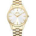 Женские кварцевые часы Slazenger — это элегантный аксессуар. Корпус диаметром 34 мм и толщиной 9 мм выполнен из суперметалла с IP-покрытиемIP-покрытиеМетод ионного напыления. Демонстрирует повышенную устойчивость к истиранию, окислению и химическим веществам. Под воздействием высокого давления и температуры около 1500°C молекулы металла надёжно соединяются с частицами корпуса часов.. Циферблат серебристого цвета оформлен индексами и стрелками. Циферблат защищён минеральным стекломМинеральное стеклоМинеральное стекло представляет собой искусственно выращенный минерал кварца. Такое стекло отличается особой устойчивостью к повреждениям и царапинам. Уступает по некоторым качествам сапфировому стеклу.. Механизм — кварцевый калибр Miyota 2035. Часы оснащены браслетом из суперметалла на раскладной застёжкеРаскладная застёжкаТакой тип застёжки используется только на браслетах из металла. Она никогда не раскрывается полностью, происходит разделение на 2 и более частей. Раскладывающая застёжка снизит вероятность потери часов к минимуму.. Водонепроницаемость 30 м позволяет использовать часы в повседневных условиях. Идеальный выбор для тех, кто ценит стиль и качество.