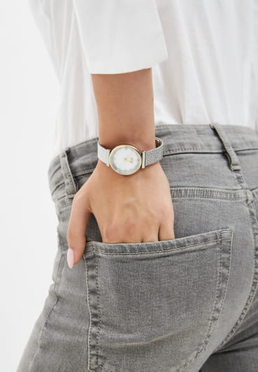 Женские кварцевые часы Slazenger — это элегантный аксессуар. Корпус диаметром 30 мм и толщиной 8 мм выполнен из суперметалла. БезельБезельВнешний ободок, закрепляющий стекло. В спортивных часах так называется поворотное кольцо с делениями на циферблате, выполняет роль таймера – замеряет отрезки времени на шкале. Неподвижный безель – элемент декора. Однонаправленно вращающийся безель на дайверских часах позволяет фиксировать моменты погружения и выныривания на поверхность. с IP-покрытиемIP-покрытиеМетод ионного напыления. Демонстрирует повышенную устойчивость к истиранию, окислению и химическим веществам. Под воздействием высокого давления и температуры около 1500°C молекулы металла надёжно соединяются с частицами корпуса часов.. Циферблат серебристого цвета оформлен индексами, стрелками и украшен фианитами. Циферблат защищён минеральным стекломМинеральное стеклоМинеральное стекло представляет собой искусственно выращенный минерал кварца. Такое стекло отличается особой устойчивостью к повреждениям и царапинам. Уступает по некоторым качествам сапфировому стеклу.. Часы оснащены браслетом миланского плетения из суперметалла на раскладном замкеРаскладная застёжкаТакой тип застёжки используется только на браслетах из металла. Она никогда не раскрывается полностью, происходит разделение на 2 и более частей. Раскладывающая застёжка снизит вероятность потери часов к минимуму.. Водонепроницаемость 30 м позволяет использовать часы в повседневных условиях. Идеальный выбор для тех, кто ценит стиль и качество.
