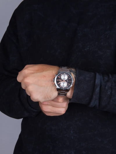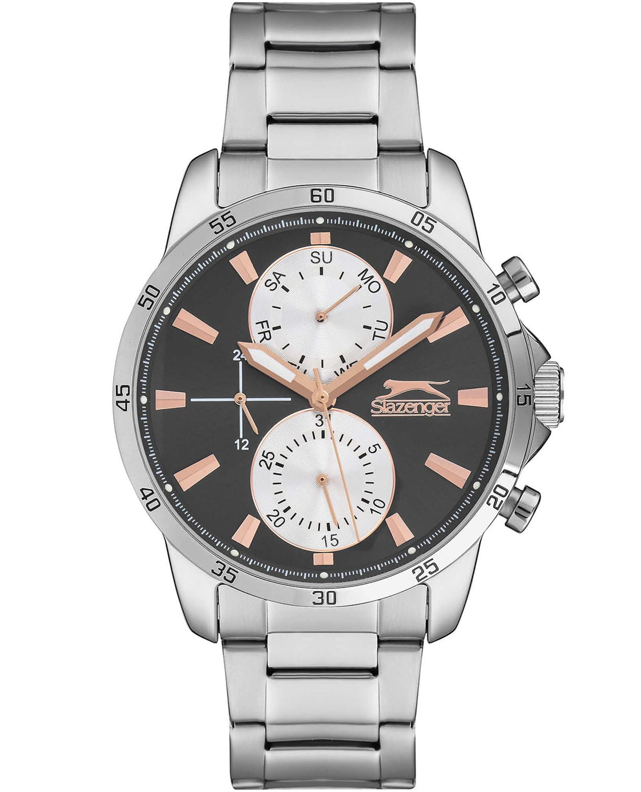Часы Slazenger SL.09.6547.2.04 — это стильный и надежный аксессуар, который подчеркивает индивидуальность своего владельца. Изысканный корпус и браслет выполнены из прочного суперметалла. Черный циферблат надежно защищен минеральным стекломМинеральное стеклоМинеральное стекло представляет собой искусственно выращенный минерал кварца. Такое стекло отличается особой устойчивостью к повреждениям и царапинам. Уступает по некоторым качествам сапфировому стеклу., устойчивым к царапинам и механическим повреждениям. Модель оснащена кварцевым механизмом, что гарантирует высокую точность хода. На отдельные циферблаты вынесены указатели 24-часового времени, даты и дня недели, что делает использование часов особенно удобным в повседневной жизни. Браслет с раскладной застёжкойРаскладная застёжкаТакой тип застёжки используется только на браслетах из металла. Она никогда не раскрывается полностью, происходит разделение на 2 и более частей. Раскладывающая застёжка снизит вероятность потери часов к минимуму., обеспечивающей комфортную посадку. Водозащита 5 АТМ позволяет не беспокоиться о случайных брызгах или дожде. Часы с люминесцентным покрытиемЛюминесцентное покрытиеПозволяет считывать показания времени в темноте. Производители наносят на стрелки, часовые индексы, безель или поверхность циферблата светонакопительный состав, дающий холодное свечение. удобно подсвечиваются в темноте после зарядки на свету. Диаметр корпуса составляет 44 мм, толщина — 12 мм, что обеспечивает комфортное ношение на запястье. Часы станут отличным выбором для повседневного использования или дополнения к деловому образу, а также послужат отличным подарком на любой праздник.