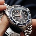 Мужские итальянские часы Spinnaker Wreck SP-5089-11, механический механизм (автоматический калибр) с высокой точностью. Сапфировое стеклоСапфировое стеклоПрочный и надёжный материал из кристалла сапфира синтетического происхождения, характеризующийся особой твёрдостью и устойчивостью к царапинам и повреждениям., устойчивое к появлению царапин и обладающее высокой прозрачностью. БезельБезельВнешний ободок, закрепляющий стекло. В спортивных часах так называется поворотное кольцо с делениями на циферблате, выполняет роль таймера – замеряет отрезки времени на шкале. Неподвижный безель – элемент декора. Однонаправленно вращающийся безель на дайверских часах позволяет фиксировать моменты погружения и выныривания на поверхность. с PVD-покрытиемPVDУльтратонкое покрытие наносится в технике вакуумного напыления, сочетает в себе нитрид титана особой прочности со слоем золота или оксида хрома. Несёт в себе декоративную или защитную функцию.. Класс водозащиты: 200 метров, позволит плавать, нырять и заниматься другими водными видами спорта. Корпус часов изготовлен из стали. Браслет с раскладной застёжкойРаскладная застёжкаТакой тип застёжки используется только на браслетах из металла. Она никогда не раскрывается полностью, происходит разделение на 2 и более частей. Раскладывающая застёжка снизит вероятность потери часов к минимуму.. Окошко даты находится в положении 3 часа. Стрелки и метки с люминесцентным покрытиемЛюминесцентное покрытиеПозволяет считывать показания времени в темноте. Производители наносят на стрелки, часовые индексы, безель или поверхность циферблата светонакопительный состав, дающий холодное свечение..