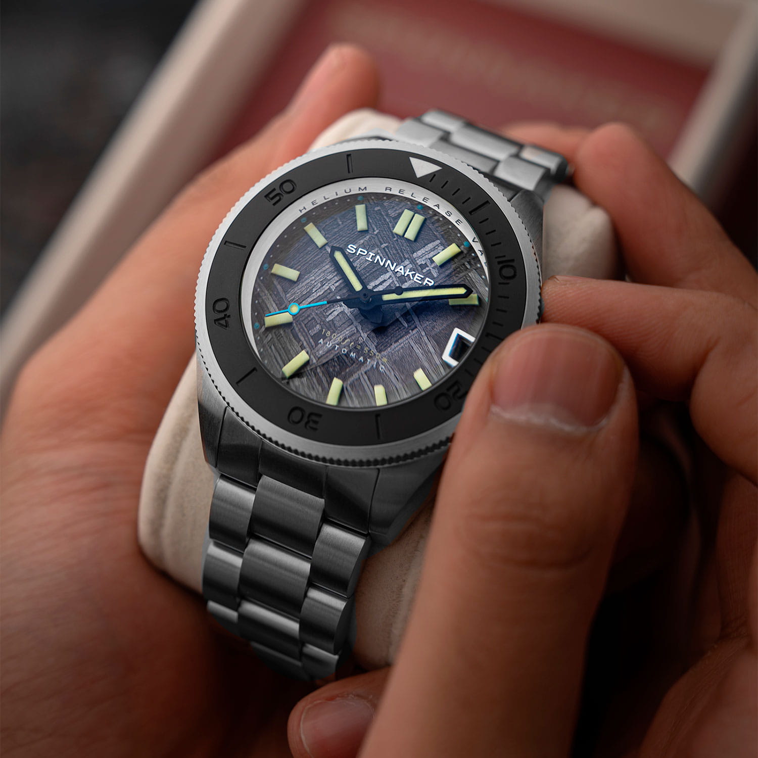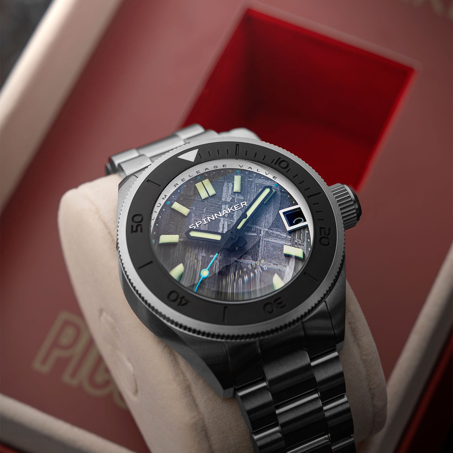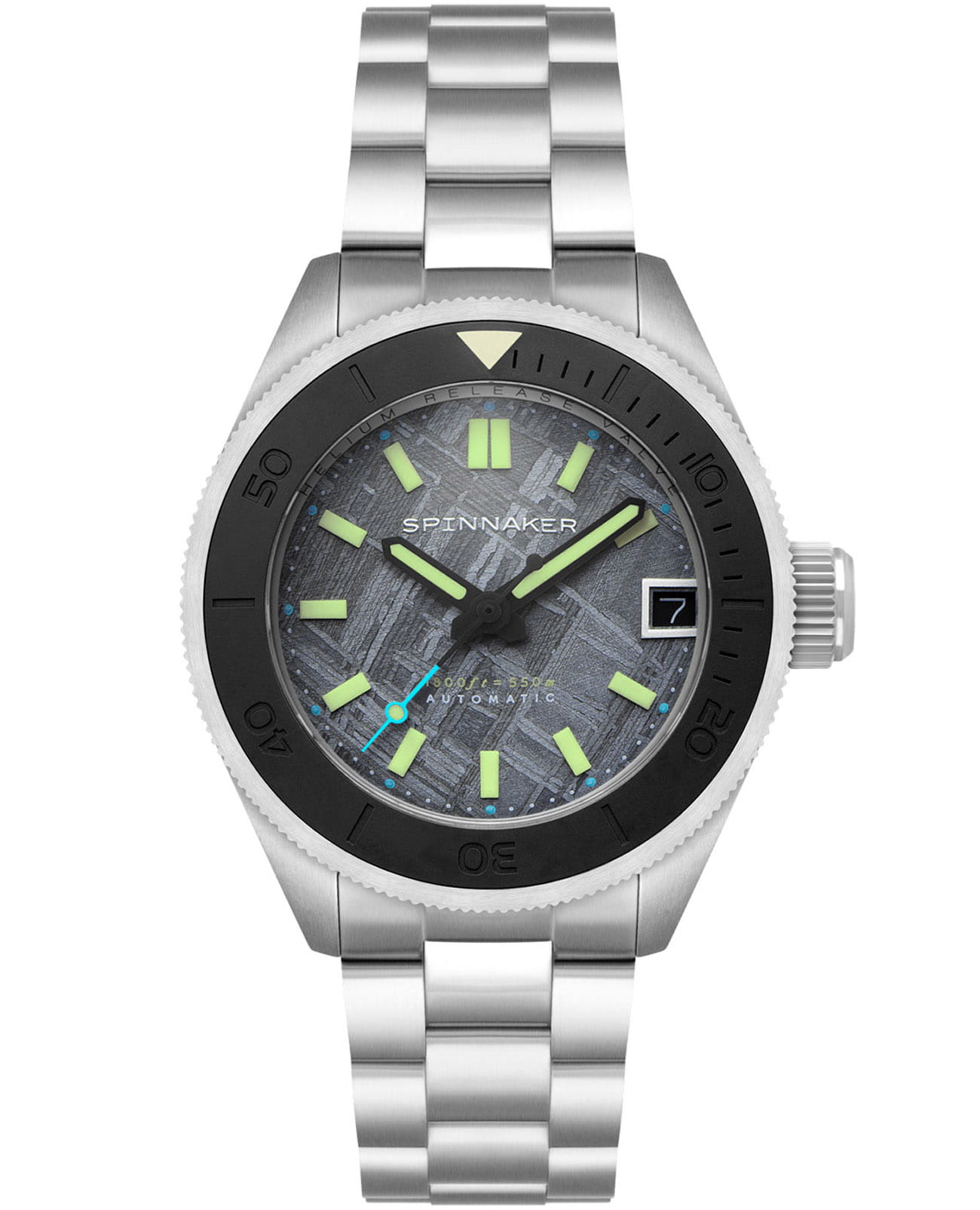 Часы Spinnaker Piccard Automatic Meteorite Limited Edition SP-5098-88 — уникальная модель, сочетающая глубоководные исследования и таинственность космоса. Циферблат изготовлен из фрагмента метеорита Muonionalusta, впервые обнаруженного в Швеции в 1906 году и предположительно упавшего на Землю более миллиона лет назад. Корпус выполнен из морской нержавеющей стали 316L, защищён сапфировым стекломСапфировое стеклоПрочный и надёжный материал из кристалла сапфира синтетического происхождения, характеризующийся особой твёрдостью и устойчивостью к царапинам и повреждениям. с выпуклой формой и антибликовым покрытием. Безель однонаправленный с . Модель оснащена автоматическим механизмом и рассчитана на водозащиту до 550 метров. Для удобства в глубоководных погружениях часы оснащены гелиевым выпускным клапаном. Браслет из нержавеющей стали с раскладной застёжкойРаскладная застёжкаТакой тип застёжки используется только на браслетах из металла. Она никогда не раскрывается полностью, происходит разделение на 2 и более частей. Раскладывающая застёжка снизит вероятность потери часов к минимуму. с предохранителем и кнопкой обеспечивает надёжную фиксацию. Эта модель выпущена ограниченной серией в 50 экземпляров, что подчёркивает её эксклюзивность и высокое качество исполнения.
