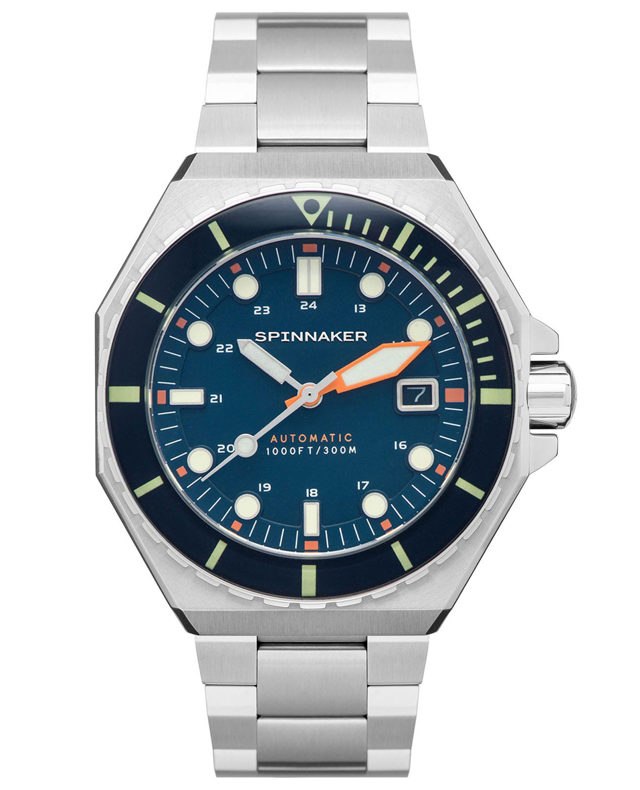 Мужские итальянские часы Spinnaker Dumas SP-5081-GG, механический механизм (автоматический калибр) с высокой точностью. Циферблат с люминесцентным покрытиемЛюминесцентное покрытиеПозволяет считывать показания времени в темноте. Производители наносят на стрелки, часовые индексы, безель или поверхность циферблата светонакопительный состав, дающий холодное свечение. стрелок и меток, дополнен сапфировым стекломСапфировое стеклоПрочный и надёжный материал из кристалла сапфира синтетического происхождения, характеризующийся особой твёрдостью и устойчивостью к царапинам и повреждениям., устойчивым к появлению царапин и обладающее высокой прозрачностью. Класс водозащиты: 300 метров, позволит плавать, нырять и заниматься другими водными видами спорта. Корпус часов изготовлен из стали.
