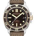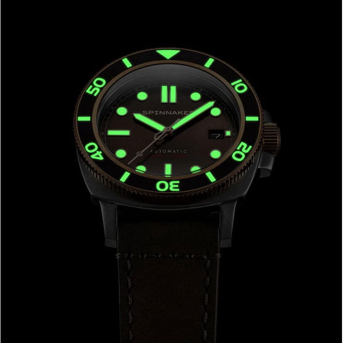 Мужские механические часы с автоподзаводом Spinnaker — это стильный и надёжный аксессуар. Корпус диаметром 42 мм и толщиной 14 мм выполнен из нержавеющей стали 316L. Циферблат коричневого цвета оформлен индексами и стрелками. Стрелки и метки с люминесцентным покрытиемЛюминесцентное покрытиеПозволяет считывать показания времени в темноте. Производители наносят на стрелки, часовые индексы, безель или поверхность циферблата светонакопительный состав, дающий холодное свечение., обеспечивающим хорошую читаемость в темноте. Окошко даты расположено в положении 3 часов. Циферблат защищён сапфировым стекломСапфировое стеклоПрочный и надёжный материал из кристалла сапфира синтетического происхождения, характеризующийся особой твёрдостью и устойчивостью к царапинам и повреждениям.. Механизм — автоматический калибр NH35 (24 камня, частота 21 600 полуколебаний в час) с запасом хода до 40 часов. Однонаправленный безельБезельВнешний ободок, закрепляющий стекло. В спортивных часах так называется поворотное кольцо с делениями на циферблате, выполняет роль таймера – замеряет отрезки времени на шкале. Неподвижный безель – элемент декора. Однонаправленно вращающийся безель на дайверских часах позволяет фиксировать моменты погружения и выныривания на поверхность. с PVD-покрытиемPVDУльтратонкое покрытие наносится в технике вакуумного напыления, сочетает в себе нитрид титана особой прочности со слоем золота или оксида хрома. Несёт в себе декоративную или защитную функцию. обеспечивает точный контроль времени погружения. Часы оснащены коричневым кожаным ремешком шириной 22 мм на классической пряжке. Водонепроницаемость 300 м позволяет использовать часы для плавания и дайвинга. Идеальный выбор для тех, кто ценит качество и универсальный дизайн.