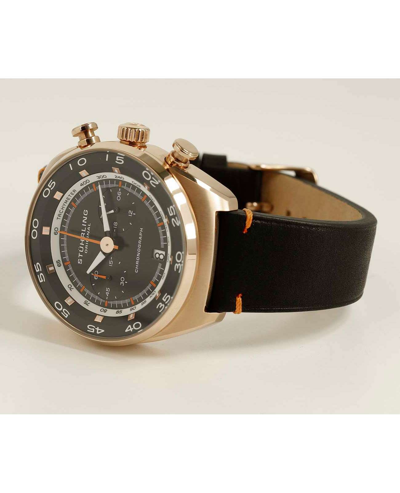 Мужские наручные часы-хронографХронографФункция позволяет измерять отрезки времени с особой точностью: часы, минуты, секунды. Верным признаком хронографа является наличие на циферблате 3 дополнительных окошек-счётчиков. Stuhrling 1000.03 из коллекции Monaco сочетают в себе спортивный дизайн и функциональность, необходимую для активного образа жизни . Модель обладает круглым корпусом, изготовленным из нержавеющей стали с PVD-покрытиемPVDУльтратонкое покрытие наносится в технике вакуумного напыления, сочетает в себе нитрид титана особой прочности со слоем золота или оксида хрома. Несёт в себе декоративную или защитную функцию., что обеспечивает высокую устойчивость к внешним воздействиям. Циферблат оснащен накладными метками в виде штрихов и окном даты в положении «6 часов», что добавляет практичности в ежедневном использовании . Для защиты циферблата используется стекло KrysternaKrysternaKrysterna — инновационное стекло для наручных часов. Благодаря уникальной структуре, Krysterna объединяет ключевые преимущества двух материалов: твердость сапфира, защищающую от царапин, и гибкость минерального стекла, обеспечивающую устойчивость к деформациям. Такая комбинация делает его идеальным решением для часов, подверженных экстремальным нагрузкам, сохраняя при этом оптическую прозрачность., которое надежно защищает от царапин и механических повреждений. Часы оснащены функцией секундомераСекундомерСекундоме́р — прибор, способный измерять интервалы времени с точностью до долей секунды., позволяющей измерять короткие промежутки времени с точностью . Стрелки с люминесцентным покрытиемЛюминесцентное покрытиеПозволяет считывать показания времени в темноте. Производители наносят на стрелки, часовые индексы, безель или поверхность циферблата светонакопительный состав, дающий холодное свечение.. Ремешок выполнен из кожи с классической застежкой, гарантирующей комфортное ношение . Кварцевый механизм обеспечивает высокую точность хода без необходимости подзаводки, что делает использование часов максимально удобным . Водонепроницаемость модели достигает 5 атмосфер (50 метров), что позволяет использовать их в повседневной жизни, однако они не предназначены для плавания или дайвинга . Спортивный дизайн и широкий функционал делают эти часы универсальным аксессуаром для активных людей.