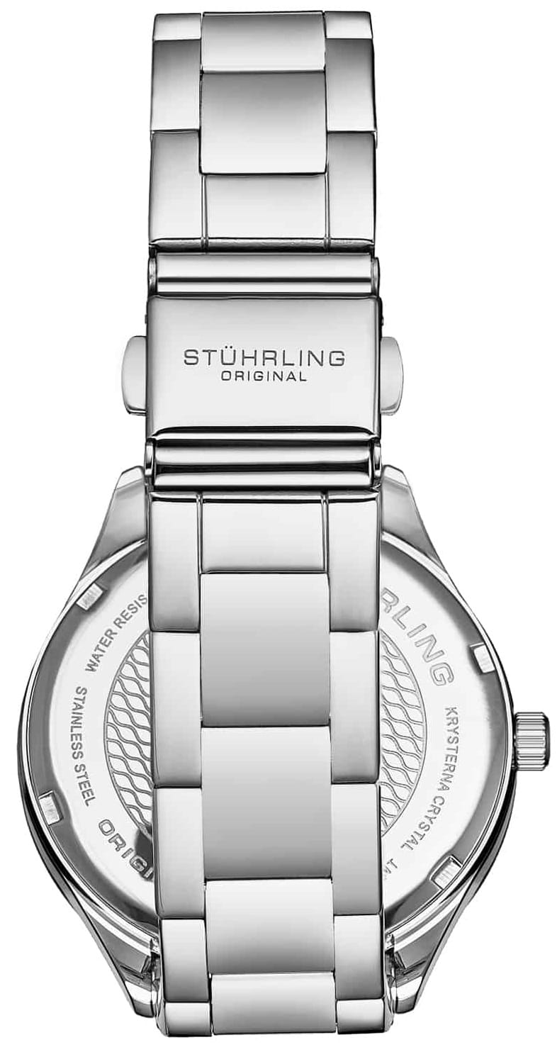 Stuhrling 4019.1 — утончённые женские часы, воплощающие романтику и изысканность в каждой линии. Корпус из нержавеющей стали. БезельБезельВнешний ободок, закрепляющий стекло. В спортивных часах так называется поворотное кольцо с делениями на циферблате, выполняет роль таймера – замеряет отрезки времени на шкале. Неподвижный безель – элемент декора. Однонаправленно вращающийся безель на дайверских часах позволяет фиксировать моменты погружения и выныривания на поверхность. украшен сияющими кристаллами, подчёркивающими женственный блеск модели. Переливчатый циферблат из перламутра с фигурным вырезом в форме сердца создаёт чарующий эффект и делает дизайн по-настоящему уникальным. Стрелки и римские метки выделяются на фоне глубокого синего оттенка, а стекло KrysternaKrysternaKrysterna — инновационное стекло для наручных часов. Благодаря уникальной структуре, Krysterna объединяет ключевые преимущества двух материалов: твердость сапфира, защищающую от царапин, и гибкость минерального стекла, обеспечивающую устойчивость к деформациям. Такая комбинация делает его идеальным решением для часов, подверженных экстремальным нагрузкам, сохраняя при этом оптическую прозрачность. надёжно защищает поверхность от царапин. Стальной браслет с раскладной застёжкойРаскладная застёжкаТакой тип застёжки используется только на браслетах из металла. Она никогда не раскрывается полностью, происходит разделение на 2 и более частей. Раскладывающая застёжка снизит вероятность потери часов к минимуму. обеспечивает удобную посадку и завершает изысканный облик. Stuhrling — это часы, которые подчеркивают элегантность, чувственность и уверенность своей обладательницы.
