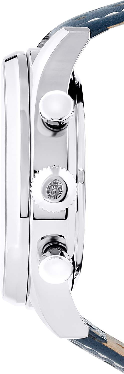 Stuhrling 934.02 — эффектные мужские часы в спортивно-классическом стиле, сочетающие энергичный характер и элегантное исполнение. Корпус из нержавеющей стали придаёт модели выразительность и статусный вид. Контрастный синий циферблат с белыми счётчиками хронографаХронографФункция позволяет измерять отрезки времени с особой точностью: часы, минуты, секунды. Верным признаком хронографа является наличие на циферблате 3 дополнительных окошек-счётчиков. и акцентами красного цвета создаёт динамичную композицию, а разметка тахиметра добавляет функциональности. Прочное стекло KrysternaKrysternaKrysterna — инновационное стекло для наручных часов. Благодаря уникальной структуре, Krysterna объединяет ключевые преимущества двух материалов: твердость сапфира, защищающую от царапин, и гибкость минерального стекла, обеспечивающую устойчивость к деформациям. Такая комбинация делает его идеальным решением для часов, подверженных экстремальным нагрузкам, сохраняя при этом оптическую прозрачность. защищает поверхность от царапин, сохраняя прозрачность и блеск. Перфорированный кожаный ремень со стандартной застежкой обеспечивает комфорт и спортивный характер образа. Stuhrling — выбор уверенного мужчины, для которого стиль, точность и мощная эстетика идут рука об руку.