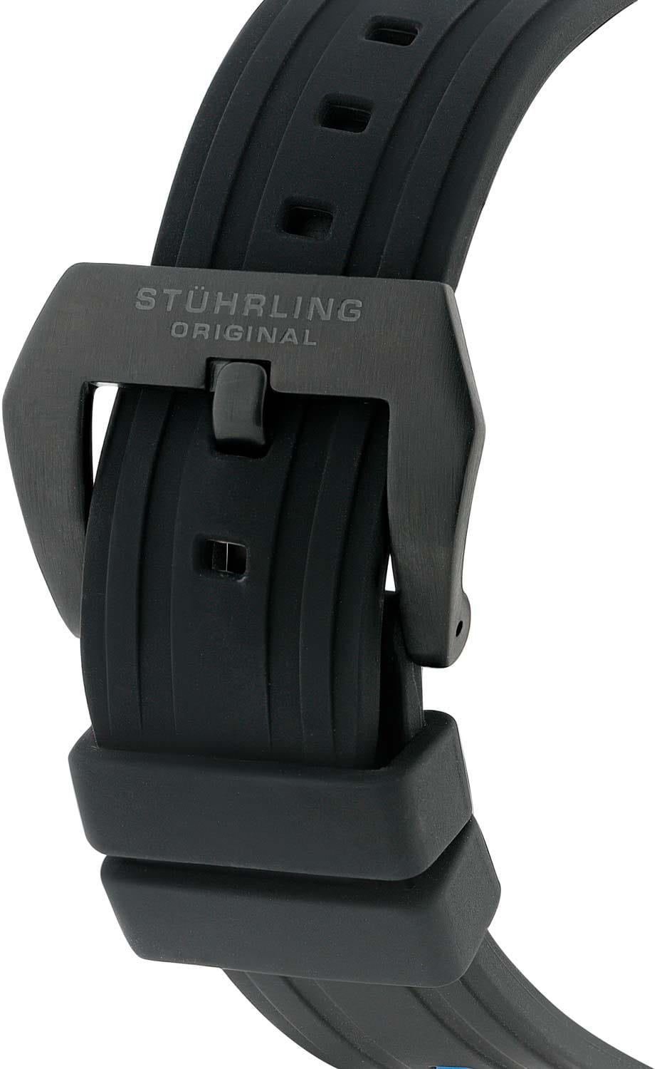 Stuhrling 984.03 — эффектные мужские часы с ярким спортивным характером и футуристичным дизайном. Корпус из нержавеющей стали с чёрным PVD-покрытиемPVDУльтратонкое покрытие наносится в технике вакуумного напыления, сочетает в себе нитрид титана особой прочности со слоем золота или оксида хрома. Несёт в себе декоративную или защитную функцию. придаёт модели выразительный матовый оттенок и повышенную устойчивость к царапинам. Циферблат выполнен в виде стилизованного ротора, где акценты насыщенного цвета создают ощущение движения и энергии. Прочный силиконовый ремешок обеспечивает комфорт и долговечность, а стекло KrysternaKrysternaKrysterna — инновационное стекло для наручных часов. Благодаря уникальной структуре, Krysterna объединяет ключевые преимущества двух материалов: твердость сапфира, защищающую от царапин, и гибкость минерального стекла, обеспечивающую устойчивость к деформациям. Такая комбинация делает его идеальным решением для часов, подверженных экстремальным нагрузкам, сохраняя при этом оптическую прозрачность. надёжно защищает поверхность от повреждений. Stuhrling — часы для тех, кто выбирает технологичный стиль и мощную эстетику в каждой детали.