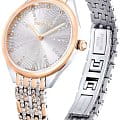 Часы Swarovski 5649987– это воплощение изысканного дизайна и функциональности, созданное для тех, кто ценит красоту и точность. Серебристый круглый корпус из нержавеющей стали оснащен безелемБезельВнешний ободок, закрепляющий стекло. В спортивных часах так называется поворотное кольцо с делениями на циферблате, выполняет роль таймера – замеряет отрезки времени на шкале. Неподвижный безель – элемент декора. Однонаправленно вращающийся безель на дайверских часах позволяет фиксировать моменты погружения и выныривания на поверхность. с PVDPVDУльтратонкое покрытие наносится в технике вакуумного напыления, сочетает в себе нитрид титана особой прочности со слоем золота или оксида хрома. Несёт в себе декоративную или защитную функцию. покрытием, украшенным паве из тридцати мерцающих кристаллов. Под минеральным стекломМинеральное стеклоМинеральное стекло представляет собой искусственно выращенный минерал кварца. Такое стекло отличается особой устойчивостью к повреждениям и царапинам. Уступает по некоторым качествам сапфировому стеклу. открывается серебристый циферблат украшен гильошированным узором и кристаллами для индексных меток. Рифленая заводная головка украшена кристаллом круглой огранки. Стальной браслет с частичным PVDPVDУльтратонкое покрытие наносится в технике вакуумного напыления, сочетает в себе нитрид титана особой прочности со слоем золота или оксида хрома. Несёт в себе декоративную или защитную функцию. покрытием и застежкой «бабочка»Застёжка "бабочка"Такой вид застёжки дополняется предохранителями, помогающими избежать случайного раскрытия браслета. Обладают изящным исполнением. , декорирован кристаллами Swarovski. Водозащита 50WR делает их устойчивыми к влаге, позволяя наслаждаться стильным аксессуаром в любых условиях.