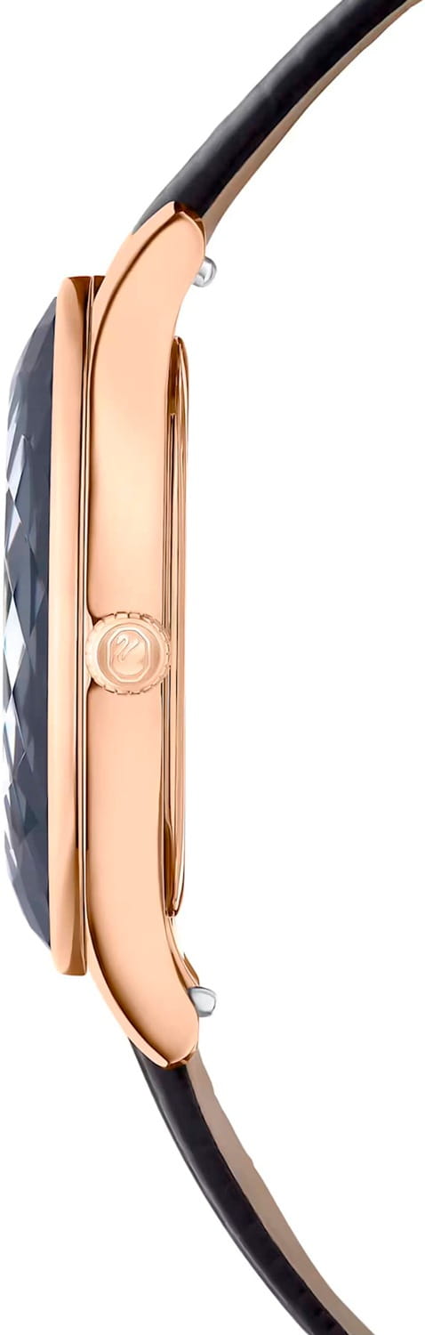 Часы Swarovski 5650033 представляют собой изысканное воплощение швейцарского мастерства и современного дизайна. Эти кварцевые часы выполнены из стали с розовым PVDPVDУльтратонкое покрытие наносится в технике вакуумного напыления, сочетает в себе нитрид титана особой прочности со слоем золота или оксида хрома. Несёт в себе декоративную или защитную функцию.-покрытием, что придает им утонченный и стильный вид. Черный циферблат украшен кристаллами Swarovski и изображением знаменитого лебедя на позиции 12 часов, придавая часам особую изысканность и блеск. Корпус диаметром 33 мм и ремешок из натуральной итальянской телячьей кожи черного цвета с тиснением под кожу ящерицы со стандартной застежкой обеспечивают комфортное ношение и элегантный внешний вид. Сапфировое стеклоСапфировое стеклоПрочный и надёжный материал из кристалла сапфира синтетического происхождения, характеризующийся особой твёрдостью и устойчивостью к царапинам и повреждениям. защищает циферблат от царапин и повреждений, обеспечивая долговечность и надежность изделия. БезельБезельВнешний ободок, закрепляющий стекло. В спортивных часах так называется поворотное кольцо с делениями на циферблате, выполняет роль таймера – замеряет отрезки времени на шкале. Неподвижный безель – элемент декора. Однонаправленно вращающийся безель на дайверских часах позволяет фиксировать моменты погружения и выныривания на поверхность. также сделан из сапфирового стеклаСапфировое стеклоПрочный и надёжный материал из кристалла сапфира синтетического происхождения, характеризующийся особой твёрдостью и устойчивостью к царапинам и повреждениям.. Водозащита 50 WR позволяет не беспокоиться о случайных контактах с водой в повседневной жизни. Клиновидные стрелки в стиле Dauphine и рифленая заводная головка с логотипом Swarovski завершают образ, делая эти часы идеальным аксессуаром для тех, кто ценит качество и стиль в каждом элементе. Эти часы не только функциональны, но и являются настоящим произведением искусства, подчеркивающим ваш изысканный вкус.