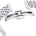 Часы Swarovski 5673022 – это воплощение изысканного дизайна и функциональности, созданное для тех, кто ценит красоту и точность. Серебристый круглый корпус из нержавеющей стали оснащен безелемБезельВнешний ободок, закрепляющий стекло. В спортивных часах так называется поворотное кольцо с делениями на циферблате, выполняет роль таймера – замеряет отрезки времени на шкале. Неподвижный безель – элемент декора. Однонаправленно вращающийся безель на дайверских часах позволяет фиксировать моменты погружения и выныривания на поверхность., украшенным паве из тридцати мерцающих кристаллов. Под минеральным стекломМинеральное стеклоМинеральное стекло представляет собой искусственно выращенный минерал кварца. Такое стекло отличается особой устойчивостью к повреждениям и царапинам. Уступает по некоторым качествам сапфировому стеклу. открывается завораживающий гильошированный циферблат с логотипом Swarovski в виде лебедя в положении 12 часов и метками, выполненными из круглых и багетных кристаллов в положениях 3,6 и 9 часов. Отсутствие секундной стрелки подчеркивает минимализм и утонченность дизайна. Рифленая заводная головка также украшена сверкающим кристаллом круглой огранки. Серебристый браслет из нержавеющей стали с застежкой «бабочка»Застёжка "бабочка"Такой вид застёжки дополняется предохранителями, помогающими избежать случайного раскрытия браслета. Обладают изящным исполнением. . Водозащита 50WR делает их устойчивыми к влаге, позволяя наслаждаться стильным аксессуаром в любых условиях.