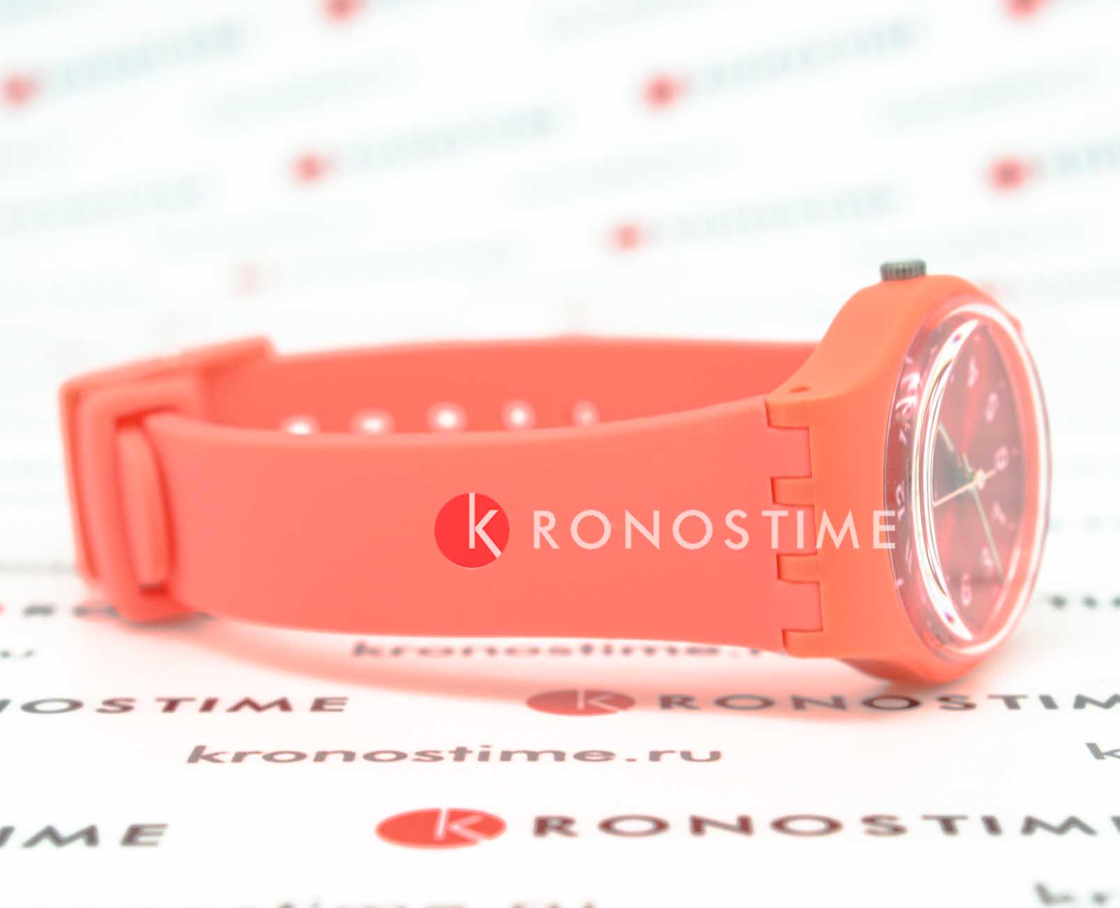Швейцарские наручные часы Swatch LP165. Эти современные и легкие женские часы относятся к коллекции Lady. С водозащитой до 30 метров они надежно защищают корпус от случайных брызг и капель дождя. Акриловое стекло, используемое в этих часах, обладает высокой прочностью и трудно разбивается; это легкий прозрачный пластик, который может прогибаться при ударах и не разлетается на осколки. Кроме того, акрил устойчив к перепадам температуры и высокому давлению. Корпус часов кораллового цвета выполнен из полимера, а механизм — кварцевый. Кварцевые часы обеспечивают большую точность по сравнению с механическими, с погрешностью хода около 20 секунд в месяц. Они не требуют завода, достаточно менять батарейку раз в несколько лет. Стрелки с люминесцентным покрытиемЛюминесцентное покрытиеПозволяет считывать показания времени в темноте. Производители наносят на стрелки, часовые индексы, безель или поверхность циферблата светонакопительный состав, дающий холодное свечение.. Ремешок силиконовый, с классической застежкой.