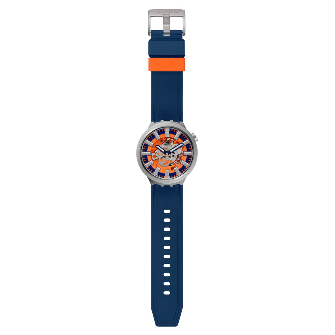 Часы Swatch SB07S114 — это стильный и современный аксессуар для тех, кто ценит лёгкость и комфорт. Часы идеально подойдут как для мужчин, так и для женщин. Эти крупные темно-синие часы с оранжевым и серебристым принтом на открытом циферблате заключены в матированный стальной корпус. Отсчет времени ведут синие часовая и минутная стрелки, светящиеся в темноте благодаря люминесцентному покрытиюЛюминесцентное покрытиеПозволяет считывать показания времени в темноте. Производители наносят на стрелки, часовые индексы, безель или поверхность циферблата светонакопительный состав, дающий холодное свечение., а также белая секундная стрелка. Темно-синий ремешок с оранжевым и синим тренчиками и стальной полупряжкой прекрасно дополняет модель. Водозащита 30 метров делает часы практичными для повседневного использования. Эти часы подойдут для повседневного ношения и станут ярким акцентом в вашем наряде.