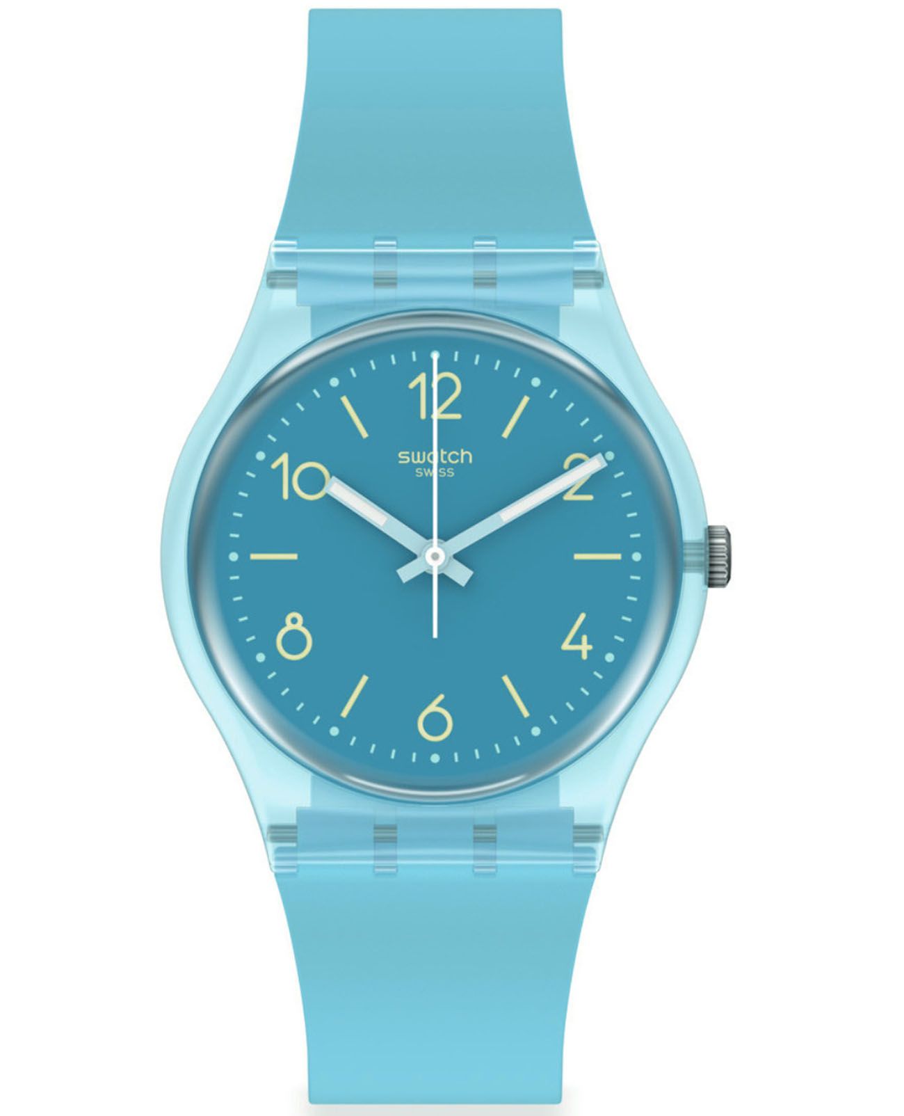 Часы Swatch SO28S101 — это стильный и современный аксессуар, который идеально подходит для повседневного ношения. Эти часы небесно-голубого цвета имеют прозрачный корпус из биоматериала и голубой циферблат с арабскими цифрами. Стрелки со светящимися в темноте кончиками с люминесцентным покрытиемЛюминесцентное покрытиеПозволяет считывать показания времени в темноте. Производители наносят на стрелки, часовые индексы, безель или поверхность циферблата светонакопительный состав, дающий холодное свечение. помогают ориентироваться в темноте. Стекло часов изготовлено из прочного полимера, устойчивого к царапинам и ударам. Ремешок часов выполнен из биоматериала и имеет регулируемую длину, на классической застежке. Внутри часов установлен надежный кварцевый механизм, который обеспечивает точность хода. Эти часы водонепроницаемы до 30 метров, что позволяет не беспокоиться о случайных брызгах или дождевых каплях. Swatch SO28S101 — это идеальный выбор для тех, кто ценит сочетание стиля, комфорта и функциональности в одном аксессуаре.