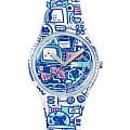 Часы Swatch SO28Z702 — эффектный и надежный аксессуар. Эти веселые часы были созданы в сотрудничестве с уличным художником Бао Хо. Белый циферблат украшен многокрасочным принтом и серебристыми стрелками часов, минут и секунд, все под стеклом из биоматериала. Специальное окно даты и дня месяца также служит индикатором "жизненной силы", который заряжается в течение 7 дней. Матовый белый корпус с темно-синим принтом изготовлен из биоматериала. Матовый белый ремешок с многокрасочным принтом сочетается с матовой темно-синей петлей и пряжкой, также темно-синего цвета. Ремешок из силикона на стандартной застёжке. Внутри часов установлен надежный кварцевый механизм, который обеспечивает точность хода. Эти часы водонепроницаемы до 30 метров, что позволяет не беспокоиться о случайных брызгах или дождевых каплях. Swatch SO28Z702 — это идеальный выбор для тех, кто ценит сочетание стиля, комфорта и функциональности в одном аксессуаре.