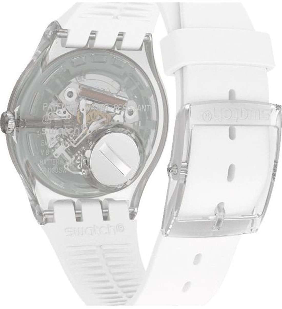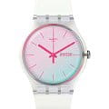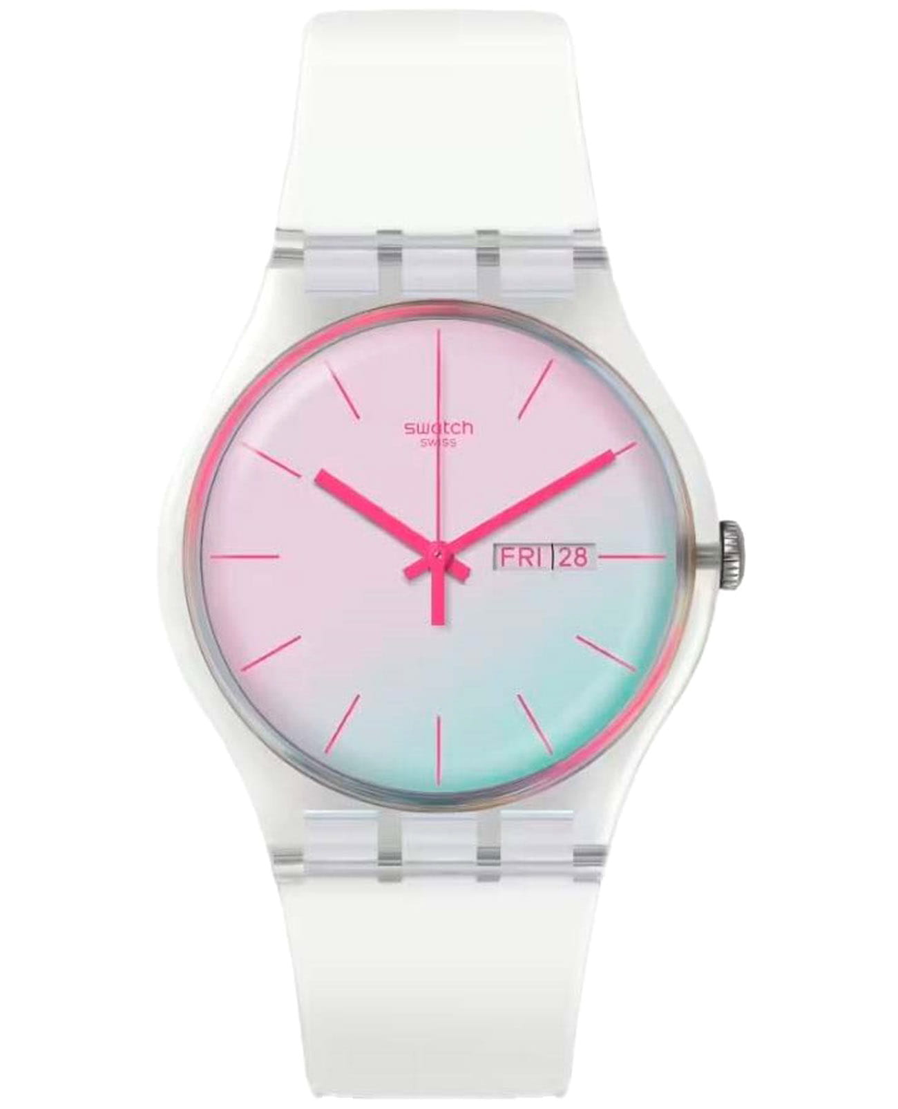 Часы Swatch SO29K704-S14 —  стильный и надежный аксессуар. Эти часы имеют белый циферблат с розовыми индексами и стекло Solar Spectrum. У них прозрачный корпус из биоматериала, а также белый ремешок и петля. Окошко даты и дня недели с розовыми буквами на уровне 3 часов. Ремешок из силикона на стандартной застёжке. Внутри часов установлен надежный кварцевый механизм, который обеспечивает точность хода. Эти часы водонепроницаемы до 30 метров, что позволяет не беспокоиться о случайных брызгах или дождевых каплях. Swatch SO29K704-S14 — это идеальный выбор для тех, кто ценит сочетание стиля, комфорта и функциональности в одном аксессуаре.