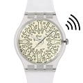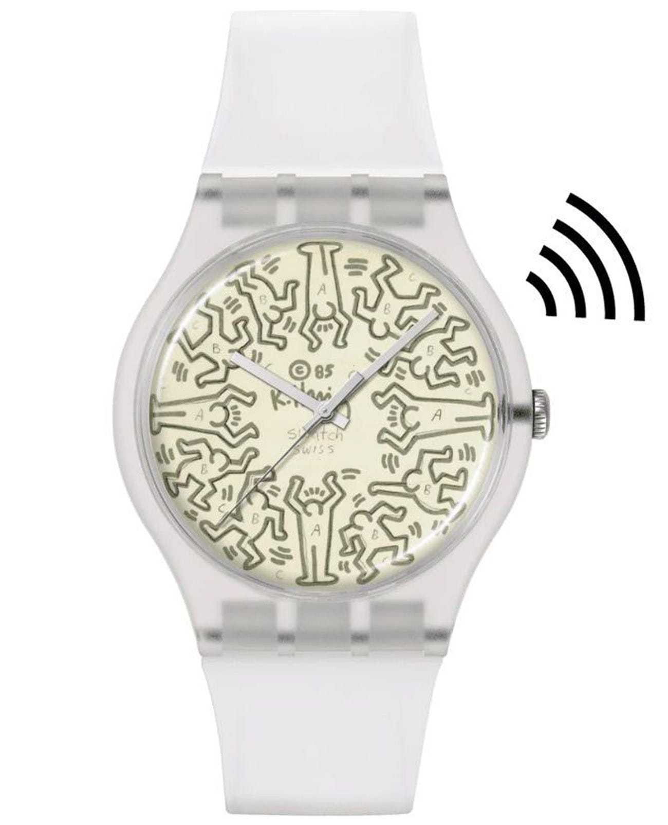 Часы Swatch SO29Z146-5300 — стильный и удобный аксессуар. Часы поддерживают функцию бесконтактной оплаты SwatchPAY!. Матовый светло-бежевый циферблат этих часов украшен серыми рисунками, подписью и авторскими правами художника Кита Харинга, а также интерпретацией логотипа Swatch. Серебристые часовая, минутная и секундная стрелки защищены стеклом из биоматериала. Матовый прозрачный корпус из биоматериала, а также матовые прозрачные ремешок, петля и пряжка завершают дизайн этих часов. Ремешок силиконовый на стандартной застёжке. Внутри часов установлен надежный кварцевый механизм, который обеспечивает точность хода. Эти часы водонепроницаемы до 30 метров, что позволяет не беспокоиться о случайных брызгах или дождевых каплях. Swatch SO29Z146-5300 — это идеальный выбор для тех, кто ценит сочетание стиля, комфорта и функциональности в одном аксессуаре.
