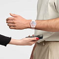 Часы Swatch Original Bioceramic Fleetingly Pink Pay! SO32P103-5300 — это стильный и универсальный аксессуар, подходящий как для мужчин, так и для женщин. Часы поддерживают функцию бесконтактной оплаты SwatchPAY!. Модель отличается круглым корпусом диаметром 41 мм и толщиной 9 мм, выполненным из прочного пластика лососевого цвета. Циферблат также лососевого оттенка, что создает гармоничный и привлекательный внешний вид. Часы оснащены кварцевым механизмом, обеспечивающим точное измерение времени. Стекло из плексигласа защищает циферблат от царапин и повреждений. Ремешок выполнен из силикона, что обеспечивает комфорт при носке. Водонепроницаемость 3 бар позволяет не беспокоиться о случайных брызгах или кратковременном погружении в воду. Модель SO32P103-5300 не имеет функции отображения даты, что придает циферблату минималистичный и чистый вид. Прозрачный циферблат позволяет наблюдать механизм часов. Эти часы станут ярким акцентом в любом образе. Они идеально подойдут как для повседневной носки, так и для особых случаев, привлекая внимание своим необычным цветовым решением и современным дизайном.