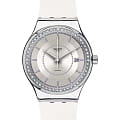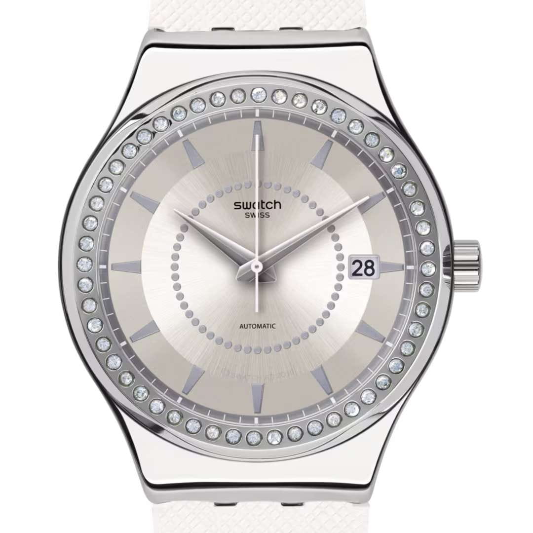 Часы Swatch YIS406 — это стильный и современный аксессуар для тех, кто ценит надежность и комфорт. Эти изящные механические часы имеют серебристый матированный циферблат с белыми стрелками и индексами. Окошко календаря расположено в положении 3 часов. Блестящий корпус из нержавеющей стали, а через заднюю крышку с цифровым принтом просматривается механизм SISTEM51. БезельБезельВнешний ободок, закрепляющий стекло. В спортивных часах так называется поворотное кольцо с делениями на циферблате, выполняет роль таймера – замеряет отрезки времени на шкале. Неподвижный безель – элемент декора. Однонаправленно вращающийся безель на дайверских часах позволяет фиксировать моменты погружения и выныривания на поверхность. украшен кристаллами. Дополняет модель матовый белый резиновый ремешок. Водозащита 30 метров позволяет защитить корпус от случайных брызг или капель дождя, что делает часы практичными для повседневного использования. Эти часы подойдут для повседневного ношения и станут ярким акцентом в вашем образе.