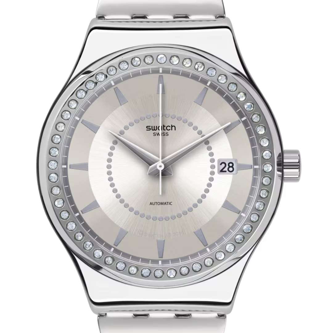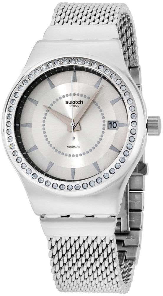 Часы Swatch YIS406GA — это стильный и современный аксессуар для тех, кто ценит надежность и комфорт. Эти изящные механические часы имеют серебристый матированный циферблат с белыми стрелками и индексами. Окошко календаря расположено в положении 3 часов. Блестящий корпус из нержавеющей стали, а через заднюю крышку с цифровым принтом просматривается механизм SISTEM51. БезельБезельВнешний ободок, закрепляющий стекло. В спортивных часах так называется поворотное кольцо с делениями на циферблате, выполняет роль таймера – замеряет отрезки времени на шкале. Неподвижный безель – элемент декора. Однонаправленно вращающийся безель на дайверских часах позволяет фиксировать моменты погружения и выныривания на поверхность. украшен кристаллами. Дополняет модель стальной браслет с «миланским плетением» и застёжкой «бабочка» с кнопкамиЗастёжка "бабочка"Такой вид застёжки дополняется предохранителями, помогающими избежать случайного раскрытия браслета. Обладают изящным исполнением. . Водозащита 30 метров позволяет защитить корпус от случайных брызг или капель дождя, что делает часы практичными для повседневного использования. Эти часы подойдут для повседневного ношения и станут ярким акцентом в вашем образе.