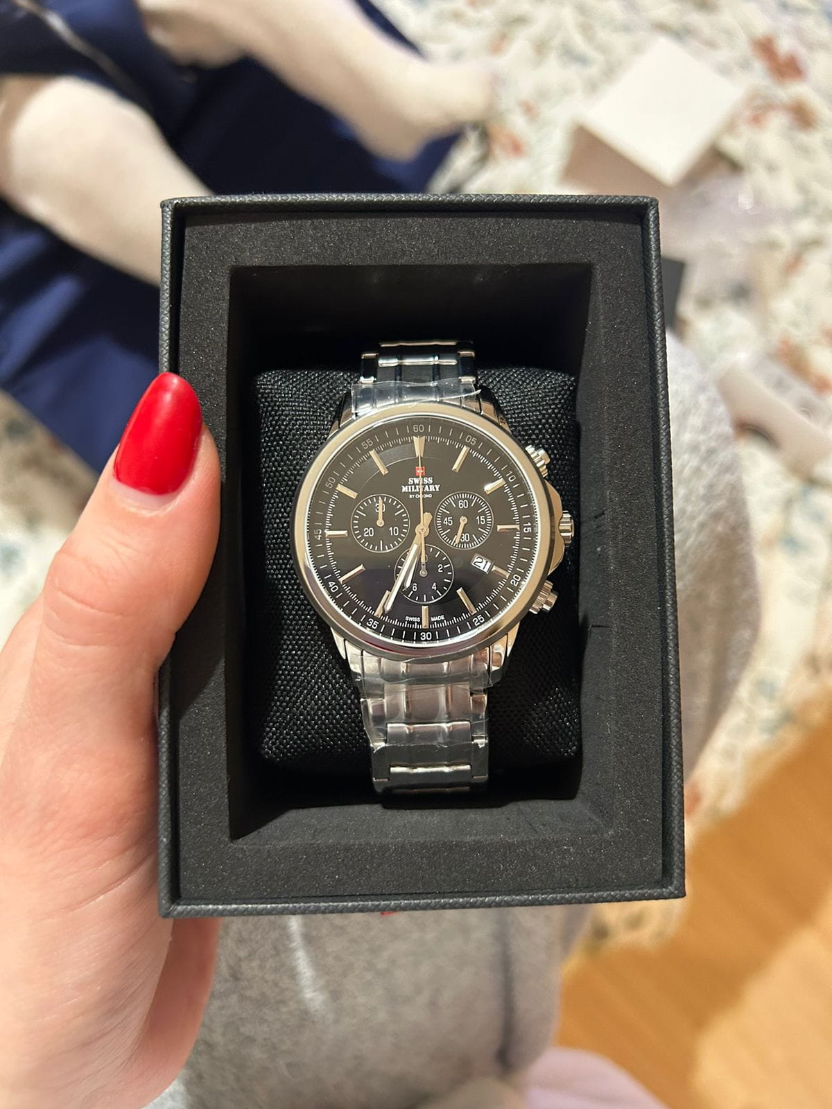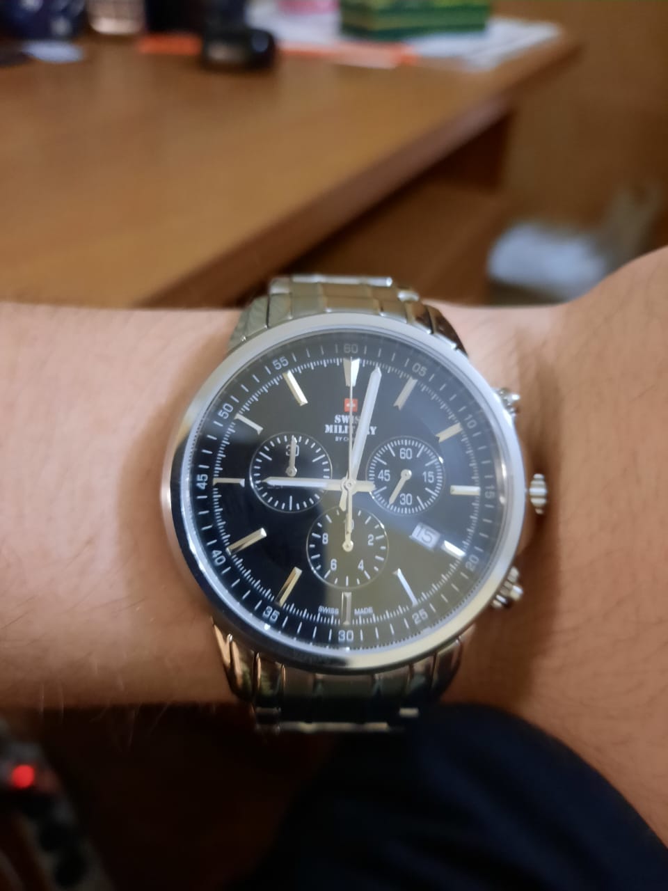Стильные швейцарские наручные часы-хронографХронографФункция позволяет измерять отрезки времени с особой точностью: часы, минуты, секунды. Верным признаком хронографа является наличие на циферблате 3 дополнительных окошек-счётчиков. Swiss Military by Chrono SM34052.01 как нельзя лучше подойдут ценителям современных техно-решений. Вся корпусная часть, за исключением сапфирового стеклаСапфировое стеклоПрочный и надёжный материал из кристалла сапфира синтетического происхождения, характеризующийся особой твёрдостью и устойчивостью к царапинам и повреждениям., состоит из инновационной нержавейки. Функциональность часов дополняет тахометрическая шкала. Заводная головка с защитой. Браслет с раскладной застёжкойРаскладная застёжкаТакой тип застёжки используется только на браслетах из металла. Она никогда не раскрывается полностью, происходит разделение на 2 и более частей. Раскладывающая застёжка снизит вероятность потери часов к минимуму..