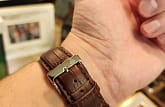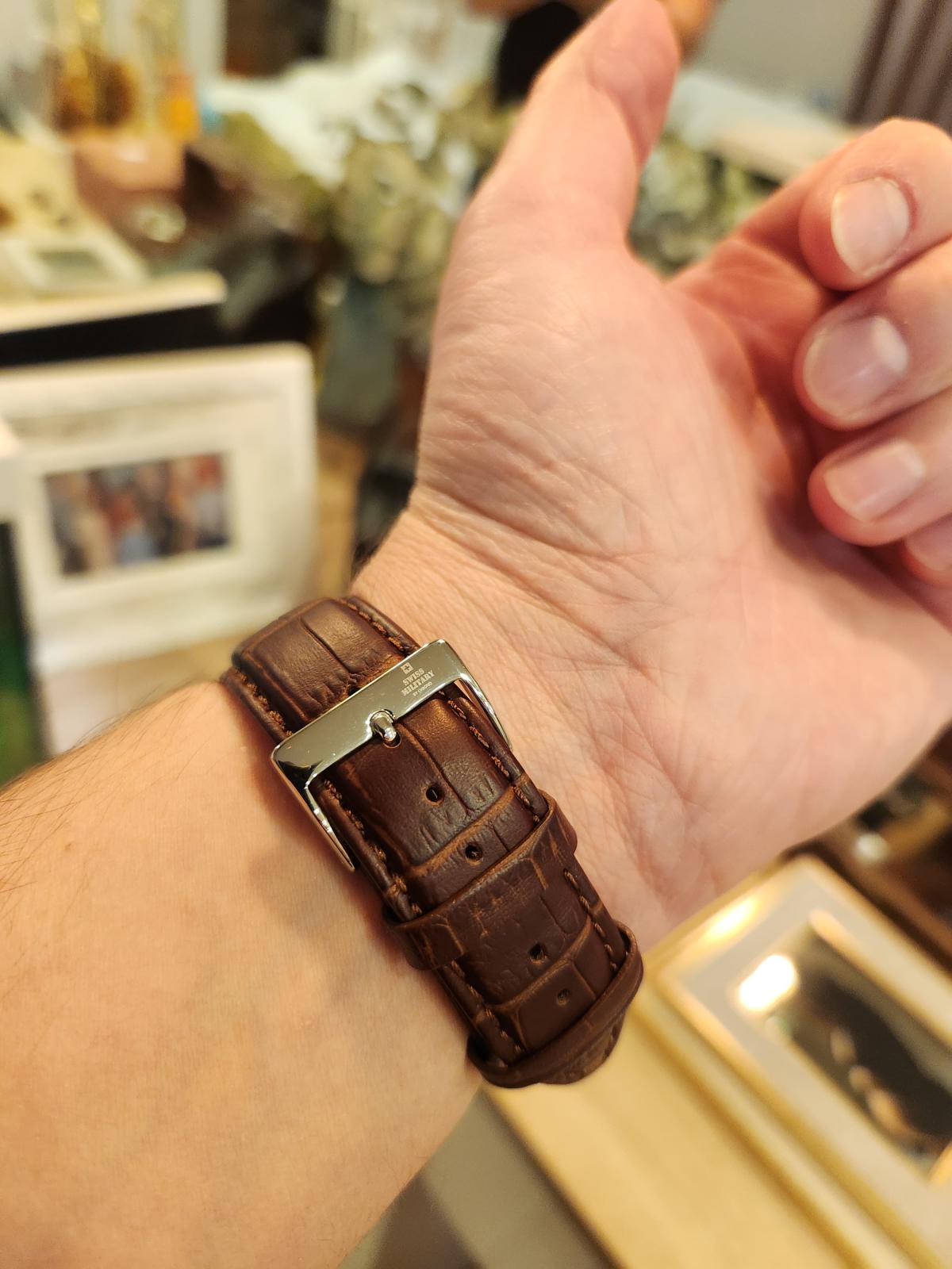 Коричневый ремешок из натуральной телячьей кожи с матовым крокодиловым тиснением и классической застёжкой обеспечивает комфортное ношение и надёжную фиксацию на запястье. Водозащита до 10 ATM делает часы подходящими для плавания и других водных активностей.