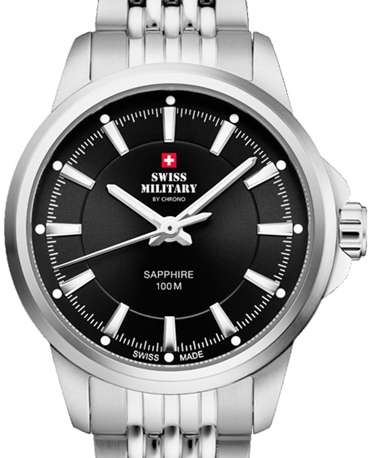 Часы Swiss Military SM34105.01 — это элегантный женский аксессуар, который объединяет швейцарское качество и классический дизайн. Корпус диаметром 28 мм и браслет выполнены из нержавеющей стали, что обеспечивает прочность и изысканный внешний вид. Чёрный циферблат с часовыми метками и стрелками защищён сапфировым стекломСапфировое стеклоПрочный и надёжный материал из кристалла сапфира синтетического происхождения, характеризующийся особой твёрдостью и устойчивостью к царапинам и повреждениям., устойчивым к царапинам.