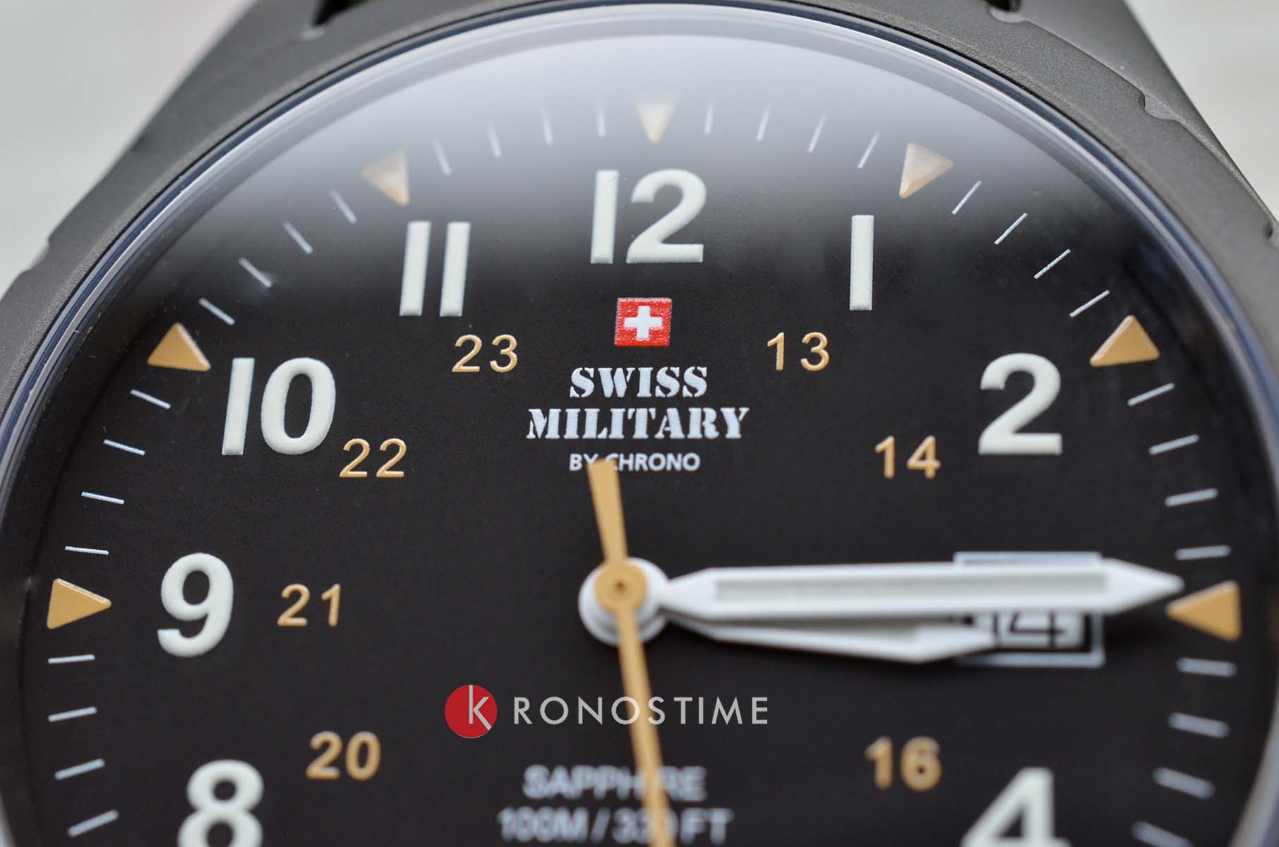 Модель SM34108.07 от Swiss Military by Chrono — это надёжные швейцарские часы в классическом армейском стиле, сочетающие функциональность и сдержанный дизайн. Корпус выполнен из нержавеющей стали с PVD-покрытиемPVDУльтратонкое покрытие наносится в технике вакуумного напыления, сочетает в себе нитрид титана особой прочности со слоем золота или оксида хрома. Несёт в себе декоративную или защитную функцию., подчёркивая прочность и элегантность конструкции. Циферблат с арабскими цифрами обеспечивает отличную читаемость, а функция отображения даты добавляет практичности. Часы оснащены кварцевым механизмом, обеспечивающим точный ход. Циферблат защищён сапфировым стекломСапфировое стеклоПрочный и надёжный материал из кристалла сапфира синтетического происхождения, характеризующийся особой твёрдостью и устойчивостью к царапинам и повреждениям., устойчивым к царапинам. Тканевый ремешок на стандартной застежке для надёжной фиксации на запястье. Модель обладает водонепроницаемостью до 100 метров, что делает её подходящей для плавания и сноркелинга.